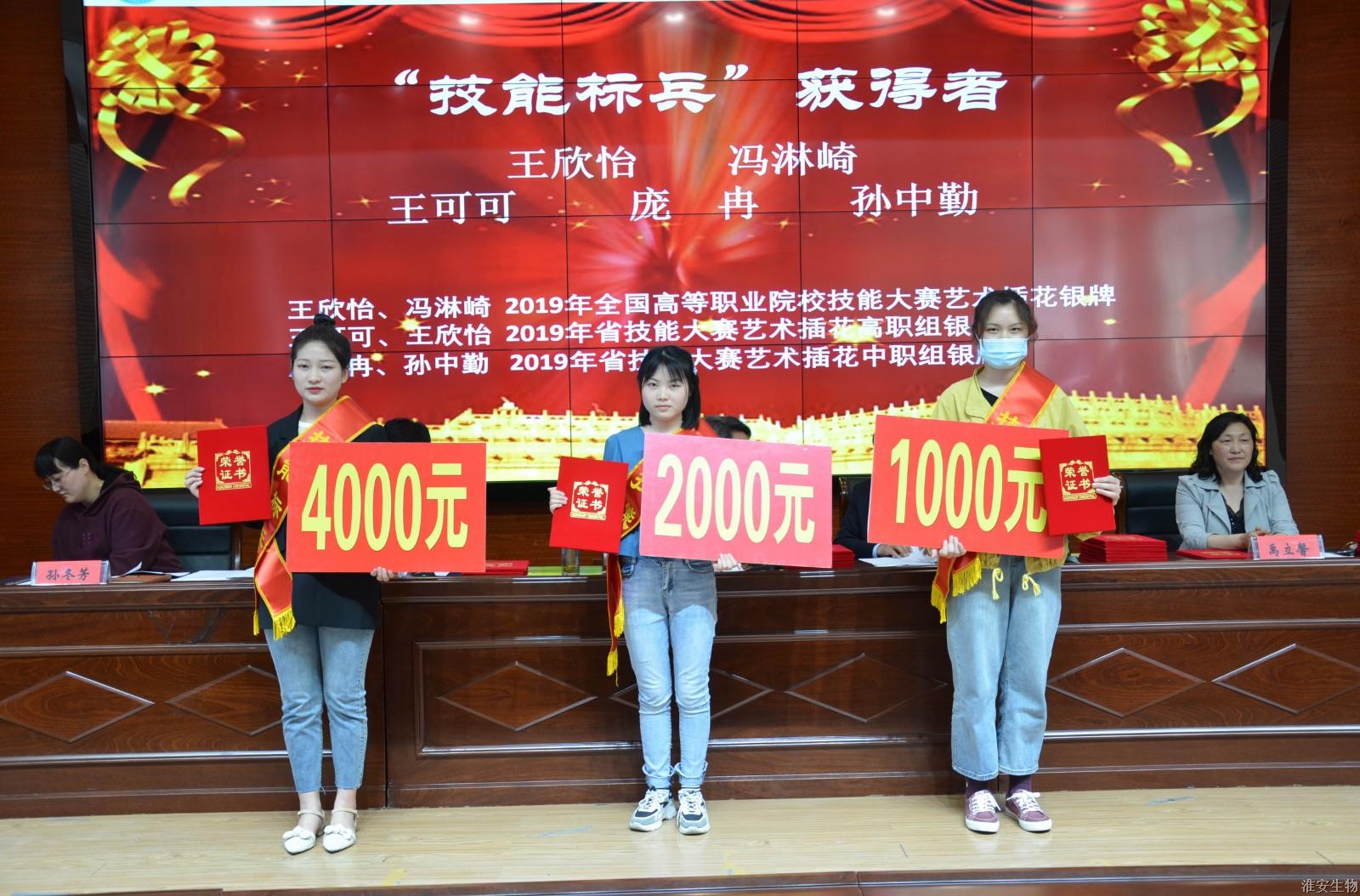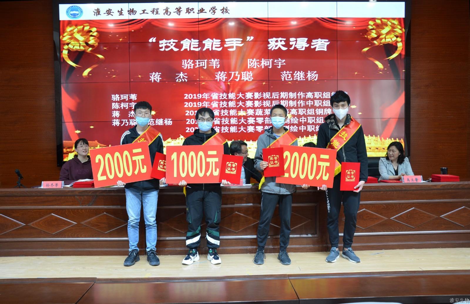 禹立馨宣读了表彰决定。2019-2020年度国家级、省级技能大赛与教学大赛获奖师生及指导教师在激昂的音乐声中走上领奖台,朱士玉及校领导为获奖师生、指导教师颁发了证书。