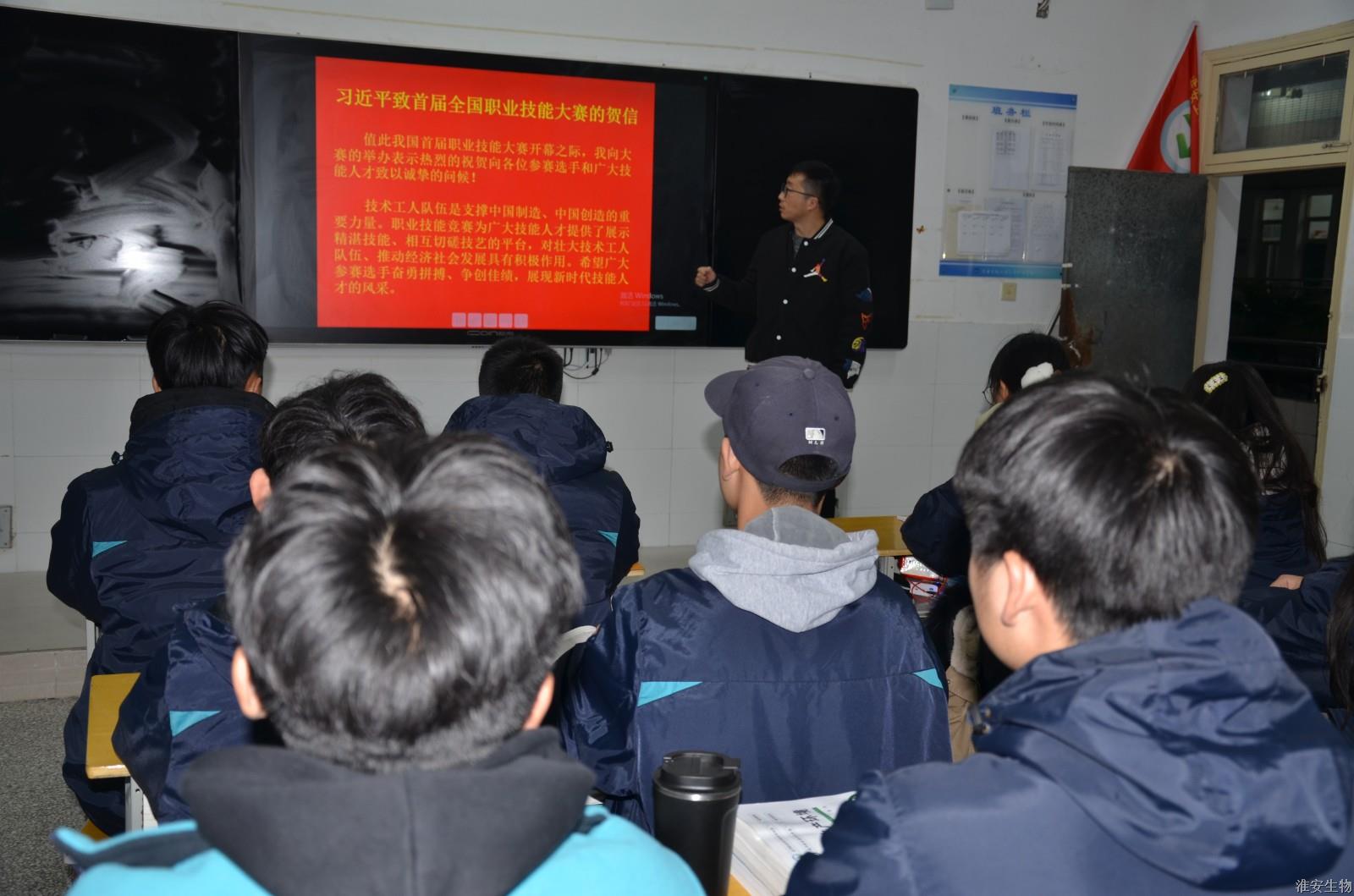 淮安生物工程学校迅速组织师生学习习近平总书记的贺信精神。贺信在该校师生中引发强烈反响。大家备受鼓舞,一致表示要牢记习总书记嘱托,践行劳模精神、劳动精神、工匠精神,用好技能大赛“练兵场”,培养更多“技能+素养”型内外兼修人才,激励广大青年走技能成才、技能报国之路。