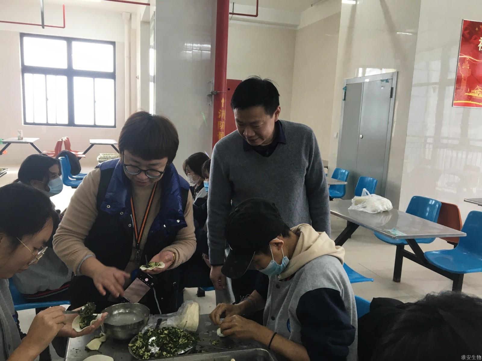 一大早,餐厅师傅们已备好饺子皮,搅拌好韭菜鸡蛋馅。内派老师、班主任们也准备好了大大小小的盘子、勺子,所有准备工作就绪。同学们分成4人一组,争先恐后的包着饺子,忙的热火朝天。李慧、宣文秀、严同云等也参与到了同学们中间,边包饺子边询问他们的日常学习、生活等情况,同学们也大方得体地和领导、老师们交流,真可谓民族团结一家亲,欢声笑语传真情。