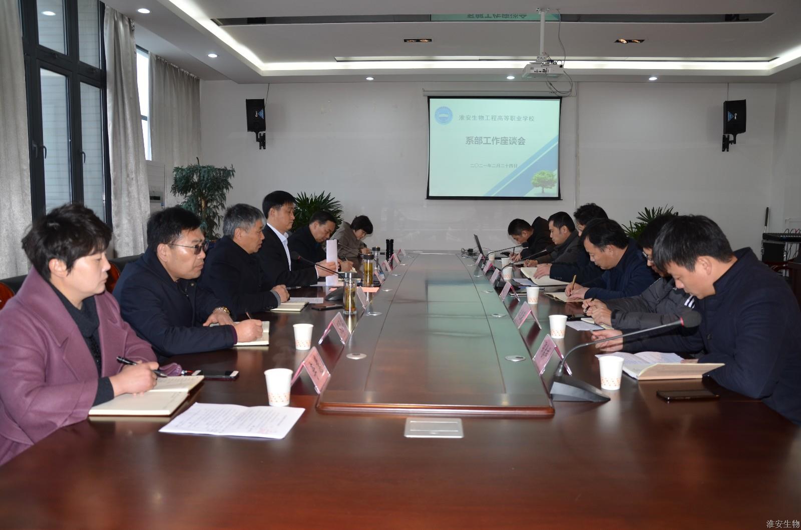 2021年2月24日上午,我校在新农业实训楼119会议室召开“系、部”工作座谈会,调研了解“系、部”工作开展情况。校党委书记、校长崔步银和“六系一部”负责人参加会议。副校长赵守东主持会议。