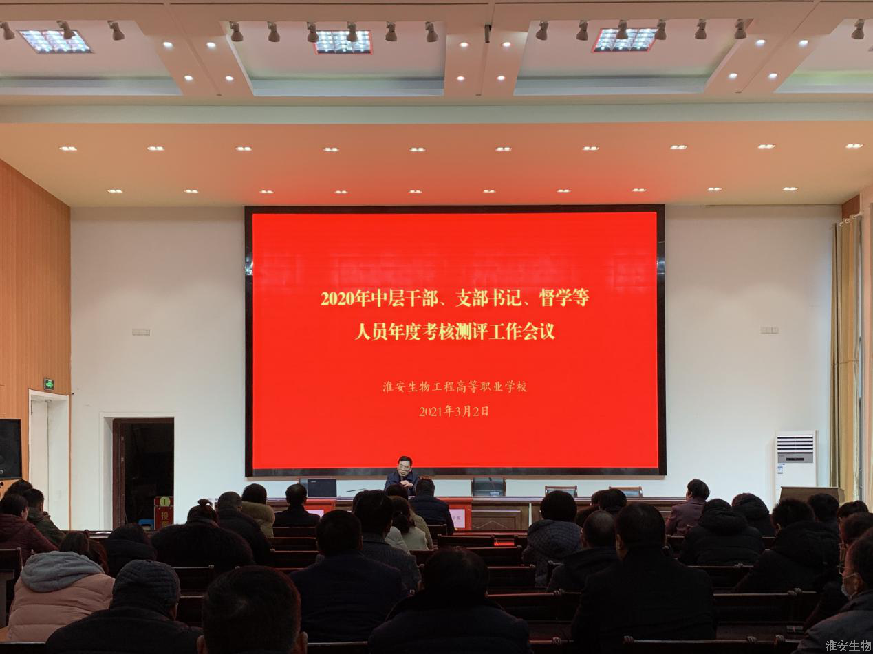 3月2日下午,我校举办中层干部、支部书记、督学等人员2020年年度考核测评工作会议。会议由校党委副书记石国安主持。校领导班子成员、全体中层干部、支部书记和督学参与测评考核。