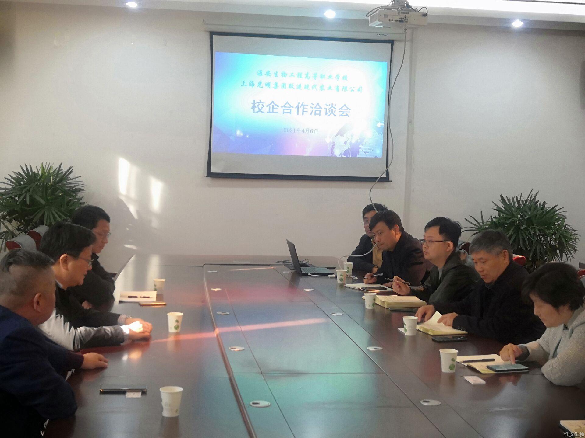 4月6日下午,淮安生物工程高等职业学校与上海光明集团跃进现代农业有限公司举行了校企合作洽谈会。上海光明集团跃进现代农业有限公司执行董事王月滨、副总经理翟元清、副总经理韩才斌,淮安生物工程高等职业学校副校长赵守东、禹立馨,校企合作处以及相关系部负责人、教师代表参加了会议。
