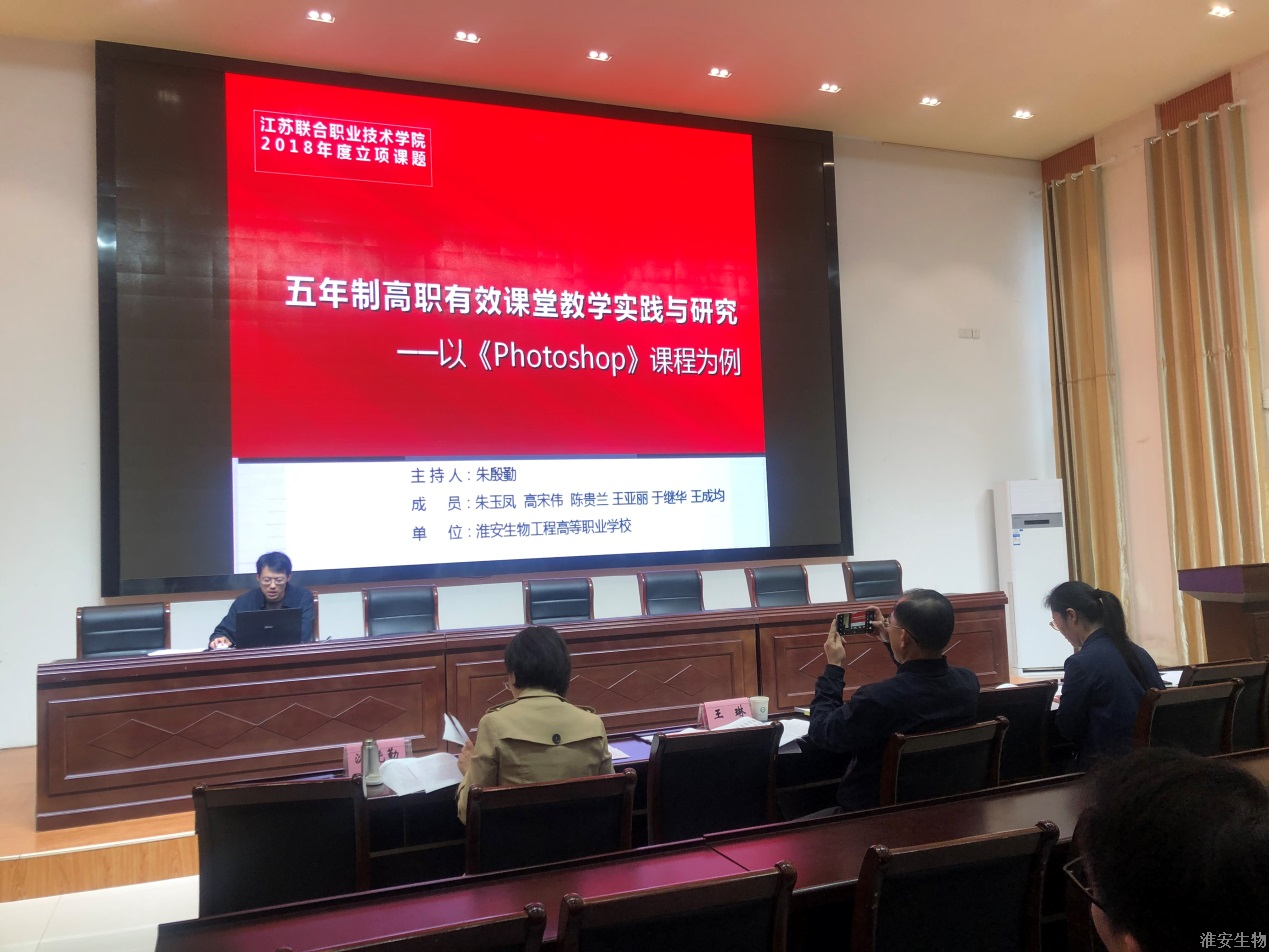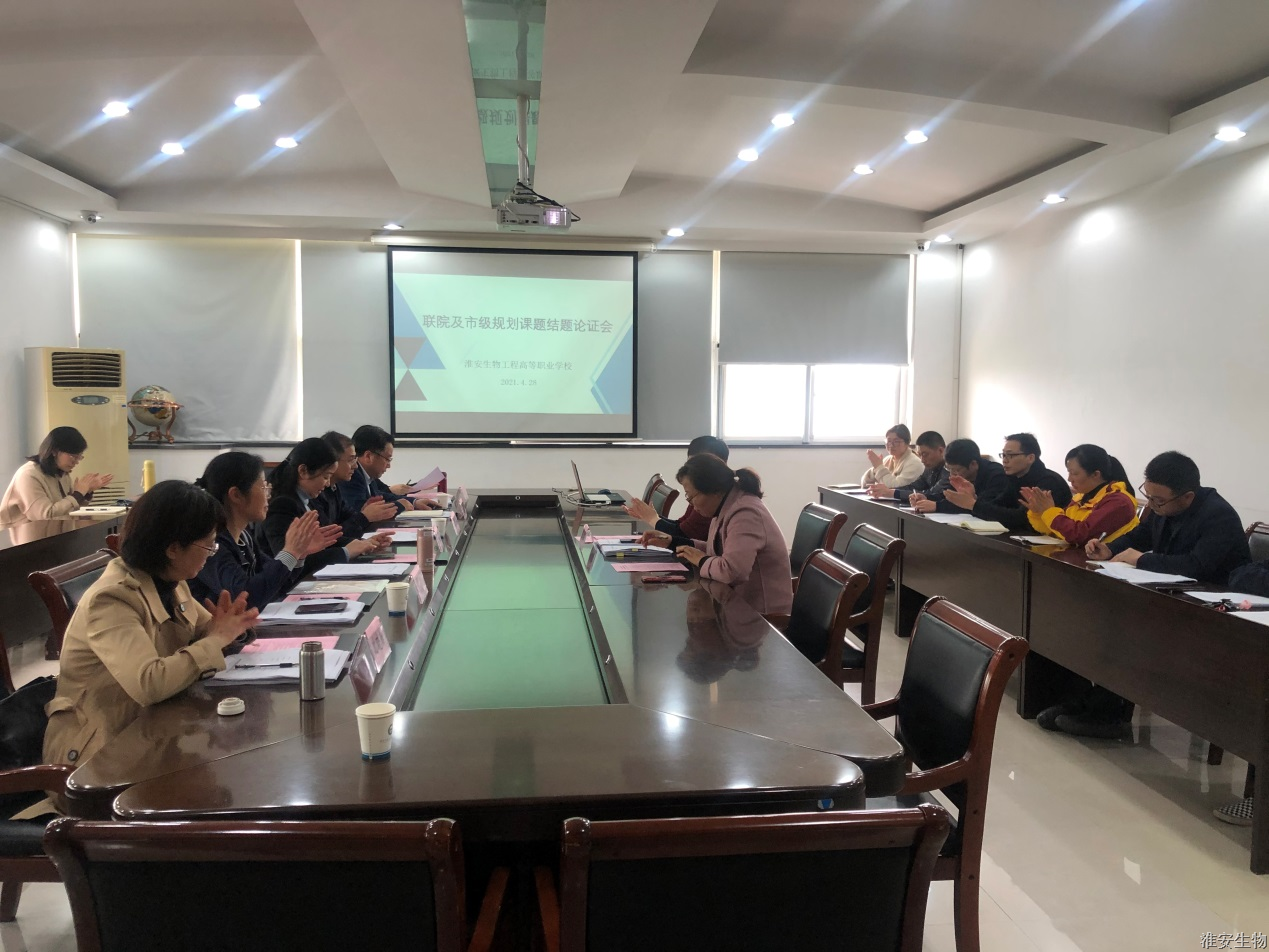4月28日下午,淮安生物工程学校在新农业实训楼124会议室和行政楼三楼会议室召开了2项联院、4项市规划教学改革课题结题论证会。本次会议邀请了江苏食品药品职业技术学院副校长翟玮玮教授、连云港工贸高等职业技术学校副校长王琳教授、市职教教研室主任朱士玉等6位专家。淮安生物工程副校长禹立馨出席会议,校科研处人员、各课题主持人、课题组核心成员参加了会议。