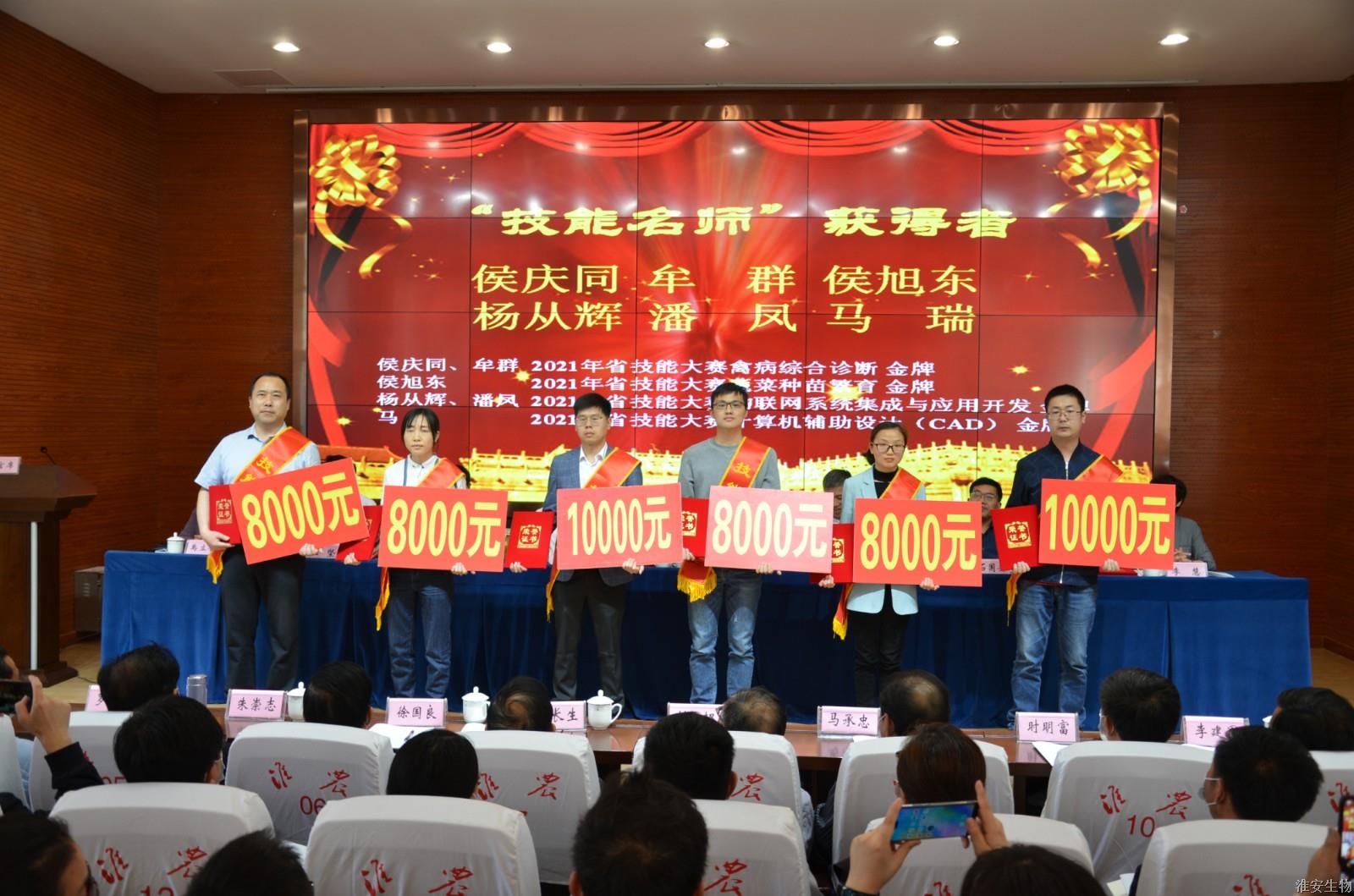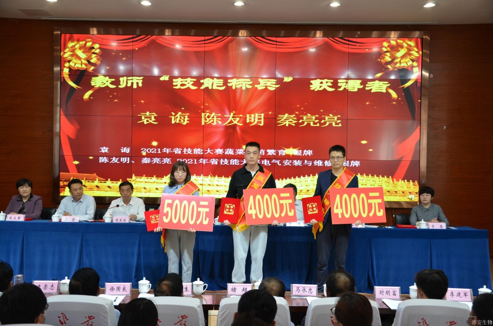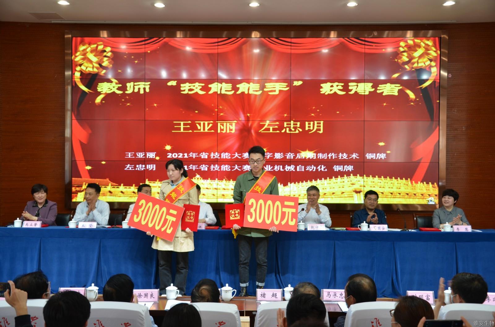 大会伊始,副校长赵守东宣读了2021年省技能大赛表彰决定。在喜庆的乐声中,在2021年江苏省职业院校技能大赛中力克群雄、斩获5金8银10铜的获奖师生及其指导教师登台领奖。