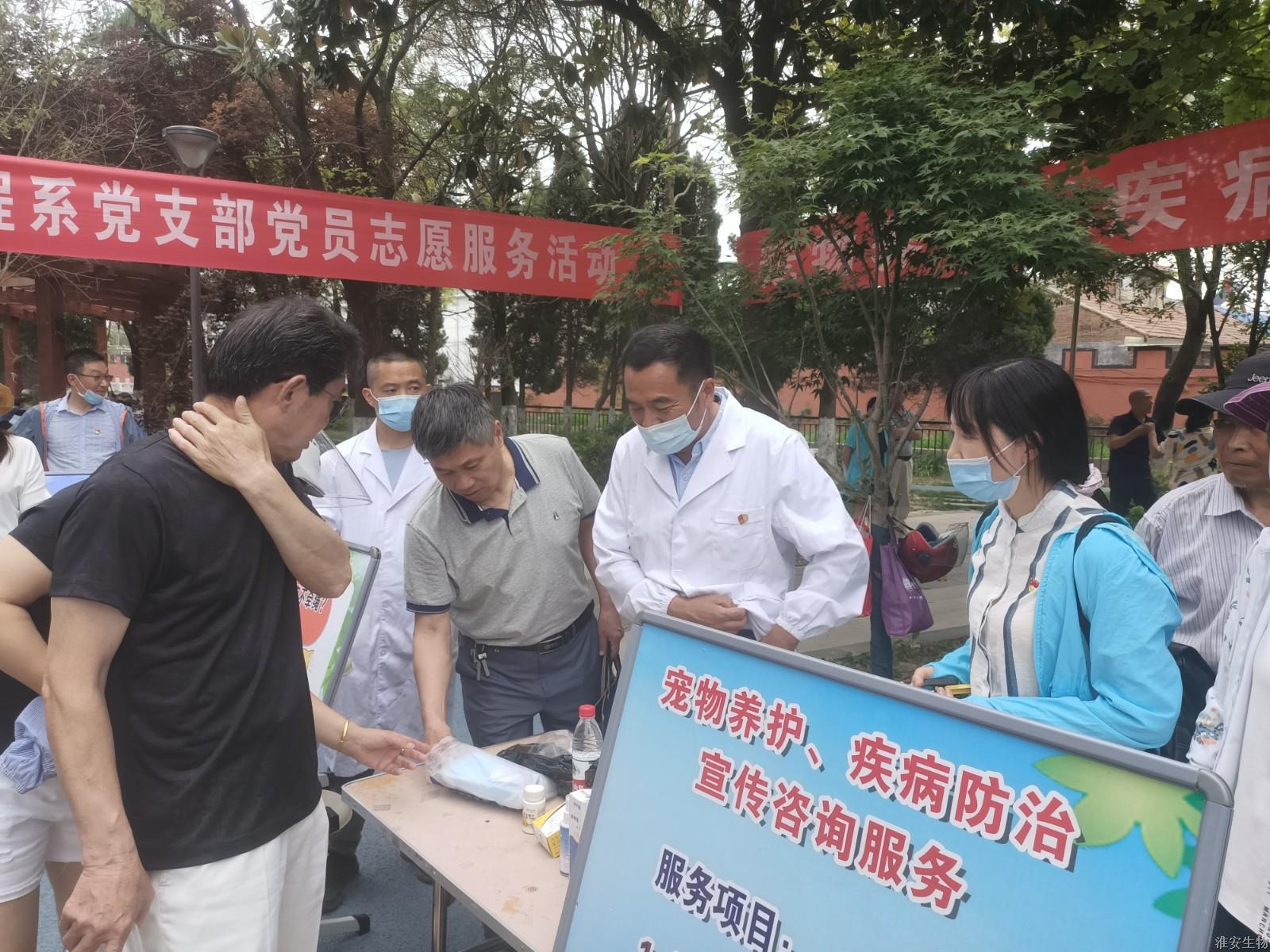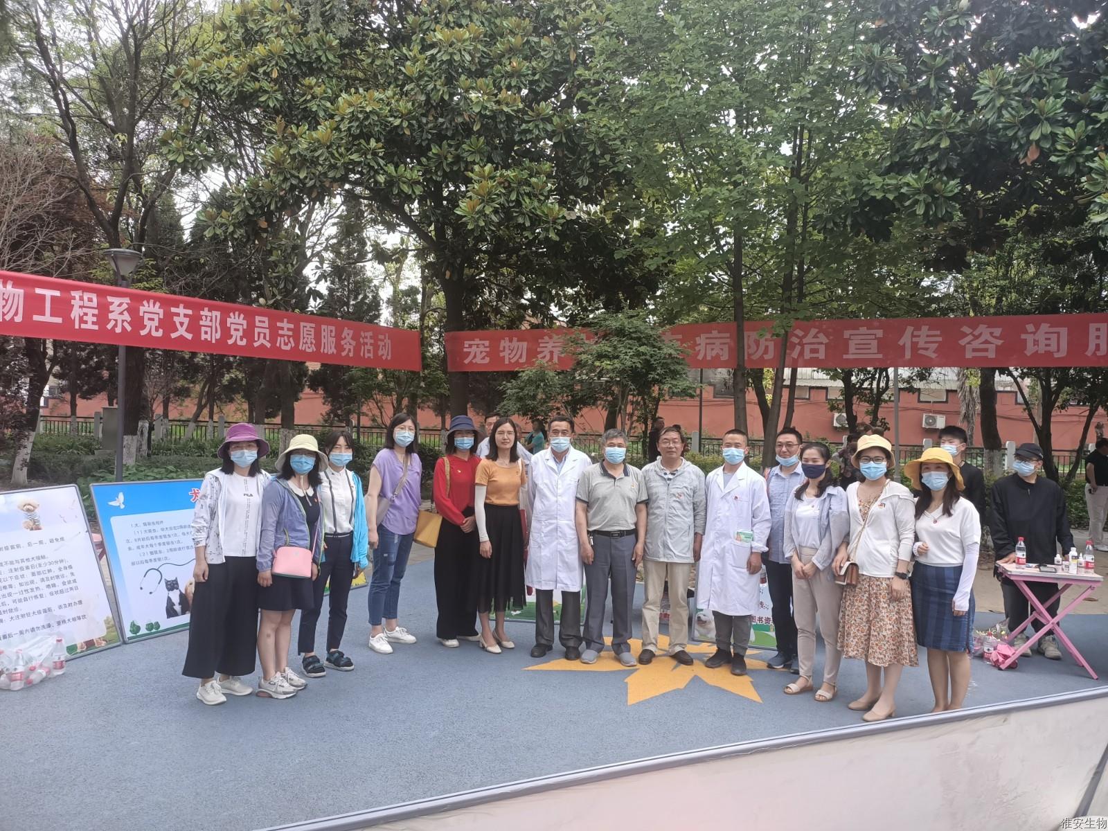 6月9日下午,动物工程系党支部党员志愿服务活动在淮安区新世纪广场举行。动物工程系党支部全体党员及宠物养护与驯导专业部分学生参加了本次活动。退休老党员专家罗永光同志应邀出席活动。