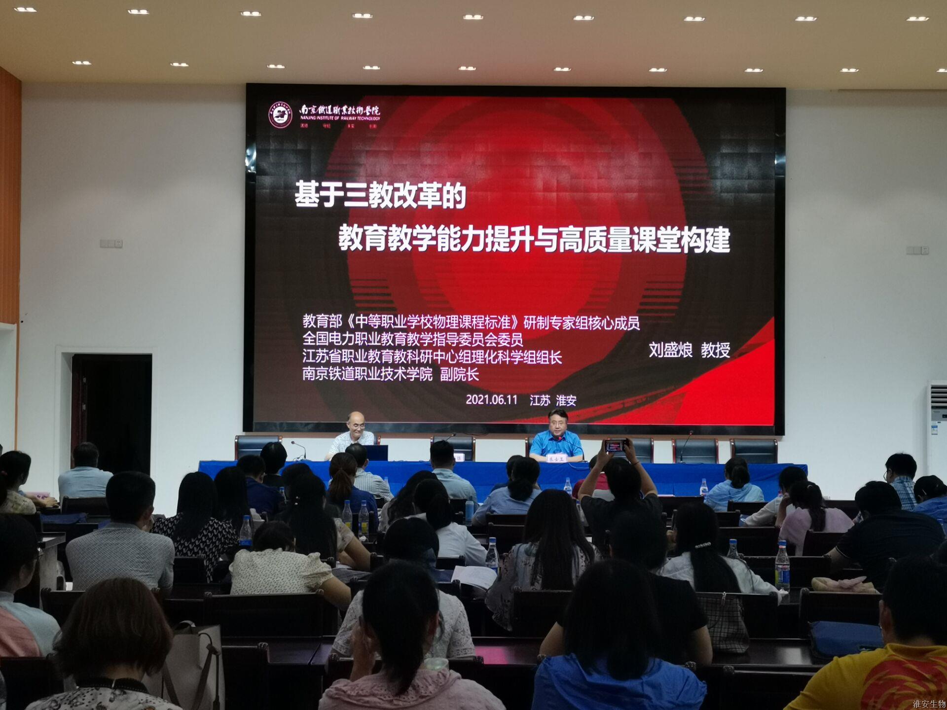 最后,南京铁道职业技术学院副院长刘盛烺教授作了《基于教育改革的教育教学能力提升与高质量课堂构建》的专题报告。他指出,“三教”改革的方法必须从产教融合的角度找准突破口。职业院校应围绕三大任务,致力于专业改造、课程改革、资源建设、环境创设、教法变革、学法创新、评价改进、育人成果几大方面,其落脚点是培养适应行业企业需求的复合型、创新型高素质技术技能人才,目的是提升学生的综合职业能力。