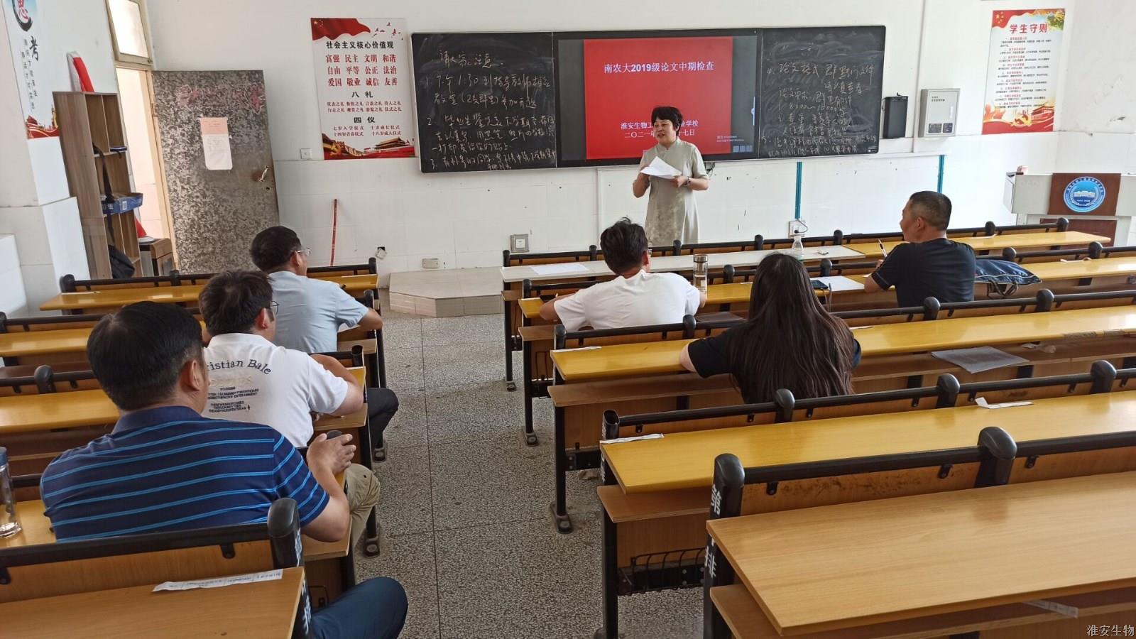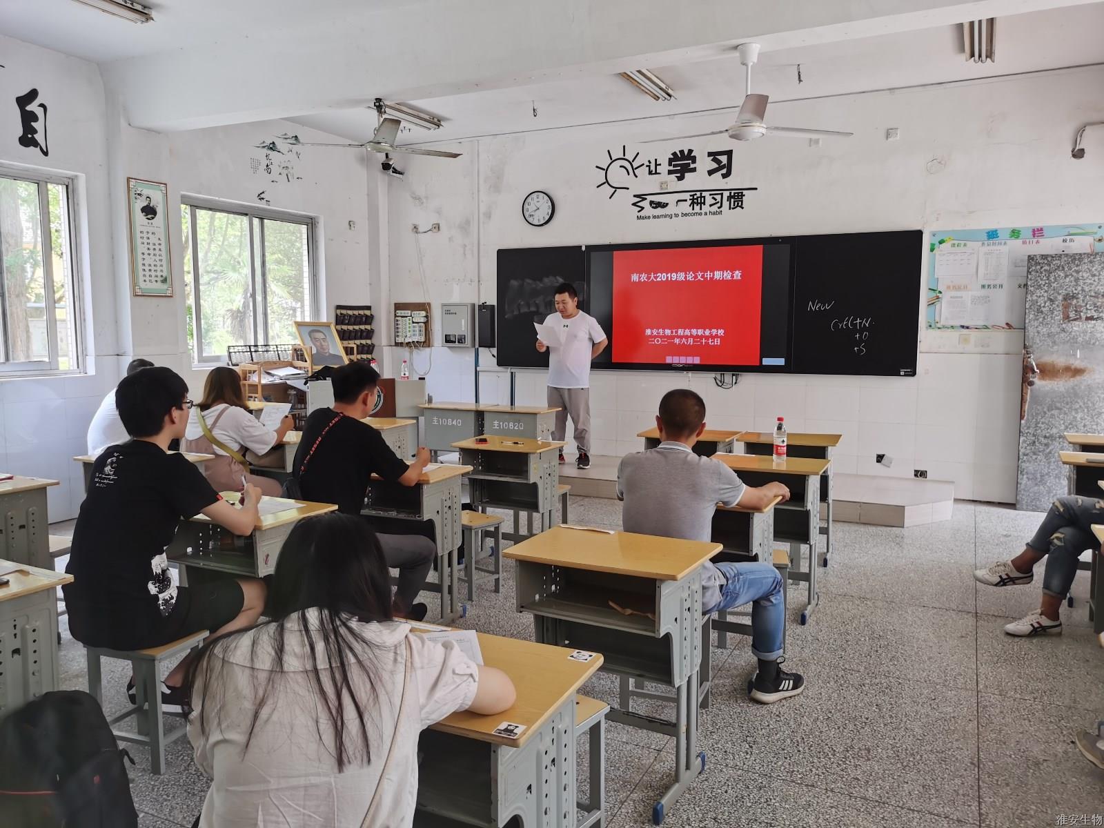 6月27日下午,淮安生物工程学校成人教育处组织2019级南京农业大学函授本科毕业生进行毕业论文中期检查。淮安生物工程学校全体指导教师参与了本次活动,共23名老师,指导本科毕业生136人。不同于开题阶段通过QQ电话+屏幕分享的方式,本次检查分为23组,由各组灵活选择地点,与指导老师面对面交流汇报。