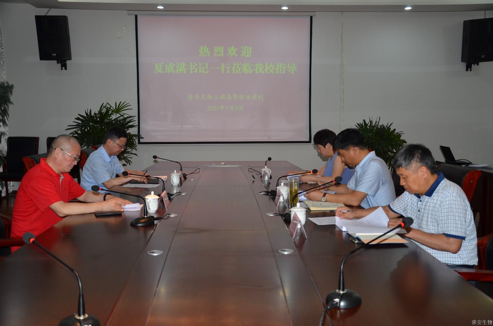 7月8日下午,江苏联合职业技术学院党委书记夏成满一行到淮安生物工程分院调研。