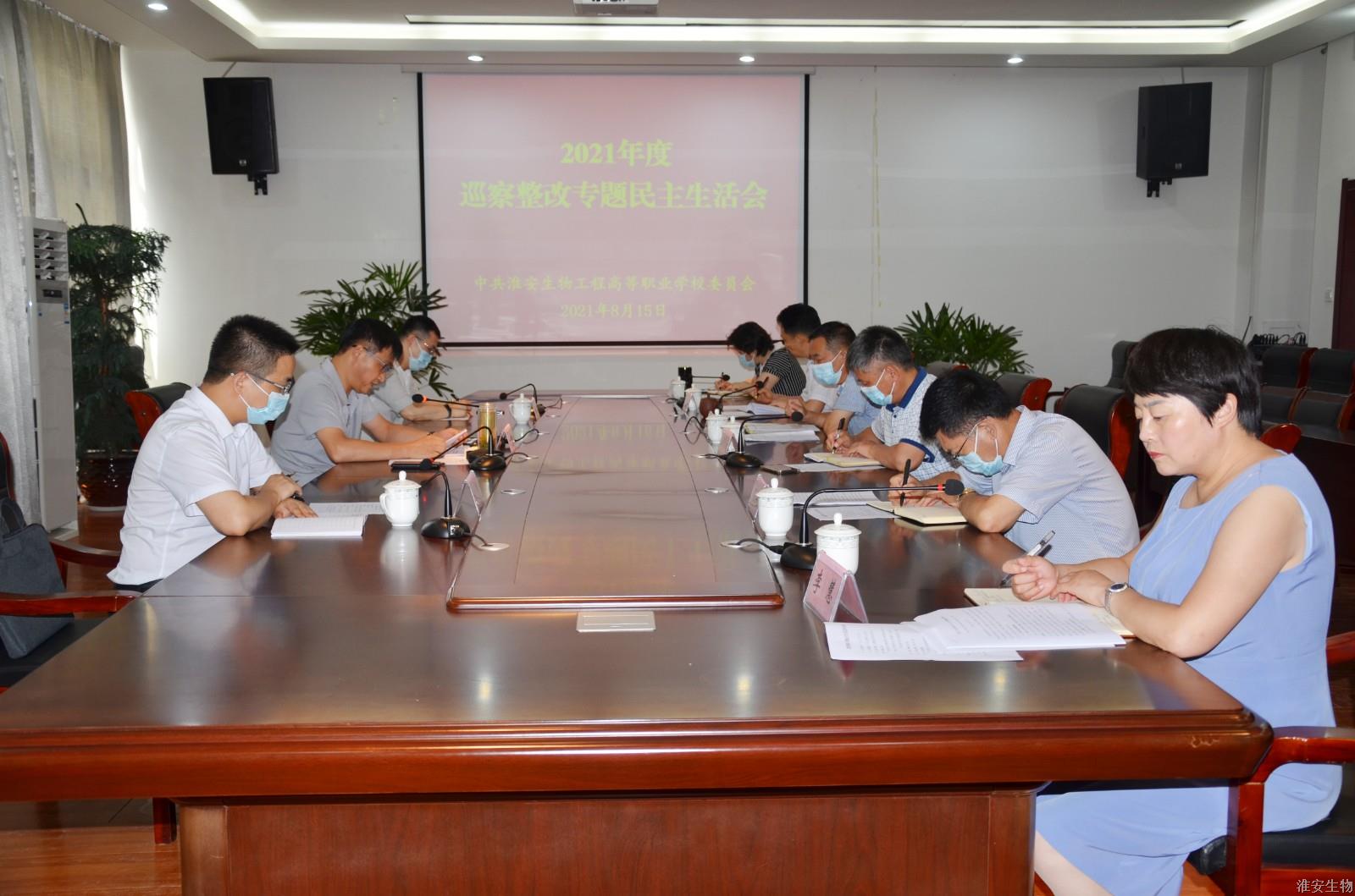 根据市委关于巡察整改工作安排部署,8月15日下午,淮安生物工程高等职业学校在新农业实训楼119会议室召开巡察整改专题民主生活会。校党委书记、校长崔步银主持会议并作表态发言,市纪委第六监督检查室池军、市委组织部干部监督处徐剑林到会指导。全体校领导参加会议。