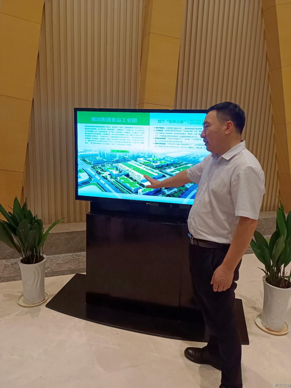 雨润集团肉类产业集团低温生产总经理李志远、人力资源总监陈功伟等企业领导对禹立馨一行的到来表示热烈欢迎,人力资源专家邹健围绕公司企业文化、经营理念与技术理念详细介绍了企业的发展和后期规划等情况。雨润集团食品工业园总投资31.8亿元,是集食品研发、生产加工、检验检疫、冷链配送、产品展示等于一体的现代化食品工业示范基地。随后,企业领导带领到访人员参观了肉食品加工车间,透过明亮的玻璃,腌制、滚揉、烟熏、切片包装、检测包装、自动化仓库等车间依次展现在面前,全方位、多角度展示雨润产品解冻、分割、绞肉、滚揉腌制、灌装、打卡、烟熏蒸煮、包装、杀菌冷却等生产全过程。