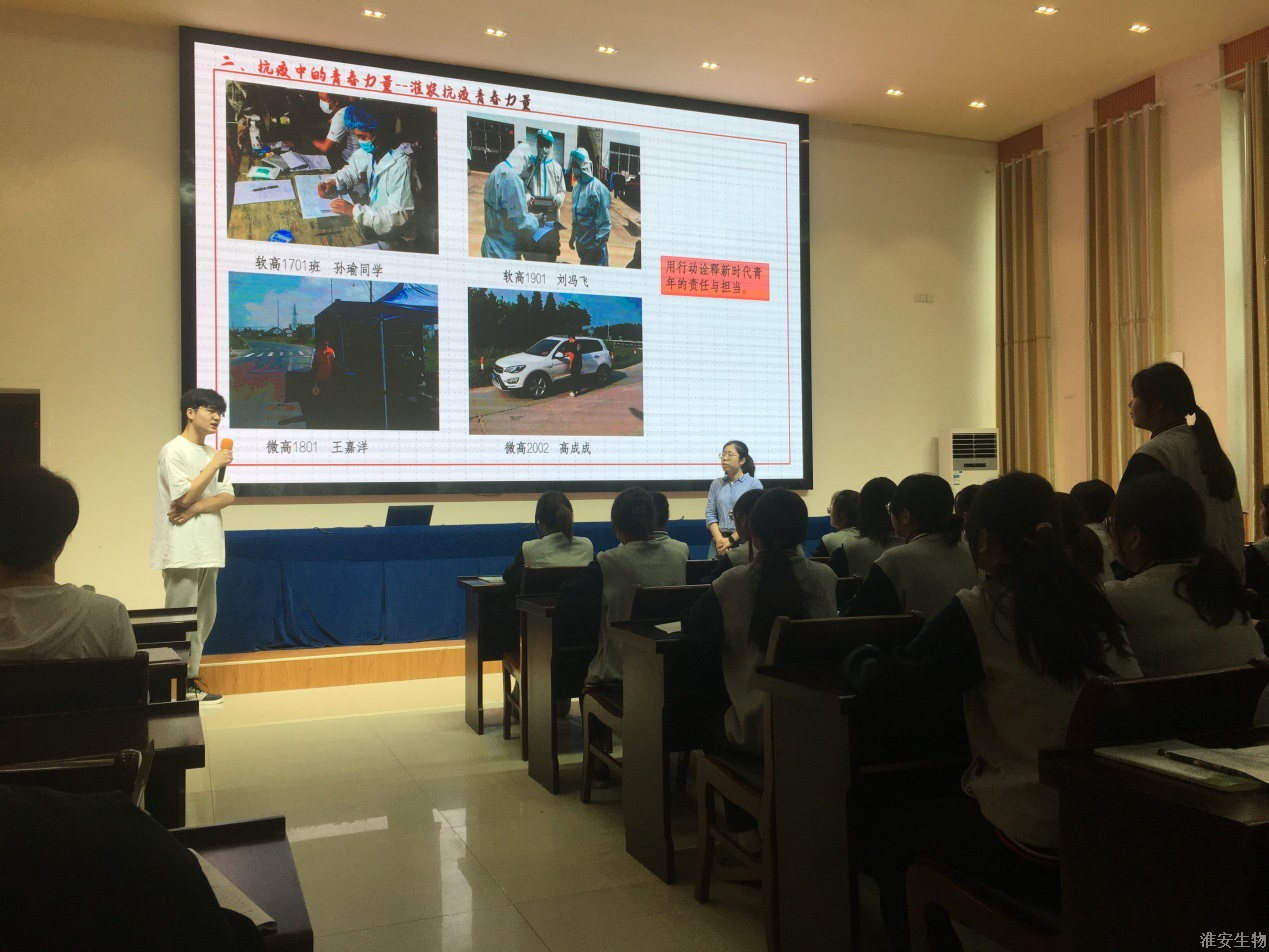 《开学第一课》由新入职的教师武宜璟老师主讲,武老师分别从疫情再袭、抗疫中的青春力量和此次疫情给予我们的启示三个方面给学生讲解了当南京、扬州疫情发生时,面对疫情,党中央始终把人民群众的生命安全和身体健康放在第一,做到应接尽接、应收尽收、应治尽治。在讲解抗疫中的青春力量这部分内容时列举了学校青年学子的抗疫故事,在疫情的发生时,积极响应号召参加志愿活动,迅速投入到疫情防控中加大对人民群众的防疫宣传,提高人民群众防控意识;最后武老师从党的坚强领导是战胜疫情的核心力量、制度优势是战胜疫情的重要保证、以人民为中心的执政理念是战胜疫情的伟大展现和伟大的革命精神是战胜疫情的强大支柱四个方面总结出在抗击疫情时中国为什么会是“优等生”。