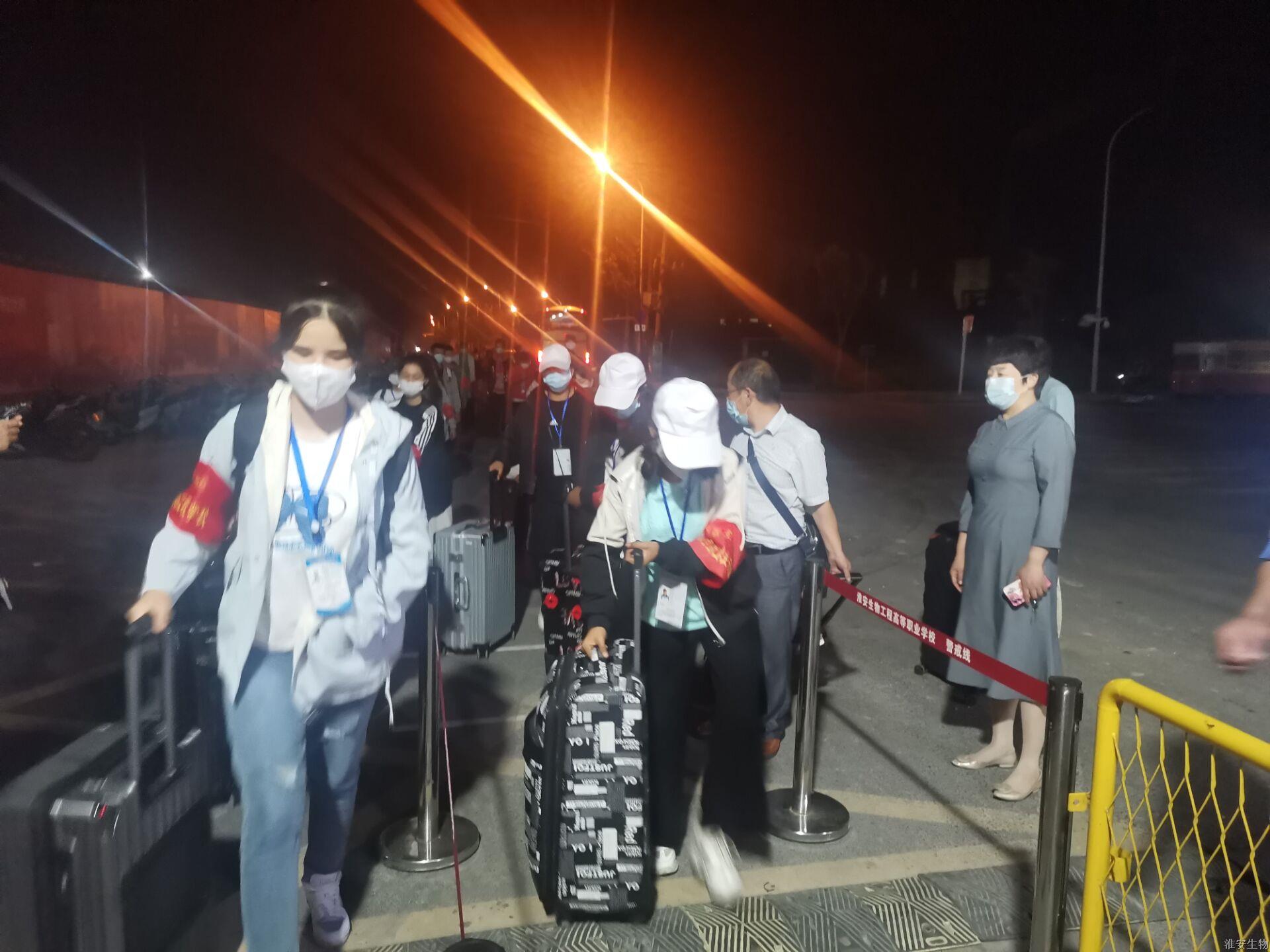 经历2天2夜的漫长旅途,9月23日深夜11点多,340余名新疆学生终于顺利抵校,欢迎同学回家!”早已在校门迎接同学们回家的副校长李慧,一边跟大家挥着手,一边温馨提醒“做好防护”“保持距离”。保安依次在校门口列队,迎接孩子们归来,测量体温的同时也在默默守护。看着周围熟悉的环境,2018级畜牧兽医班学生艾斯凯尔兴奋的说:“终于开学了,太高兴了。暑假在家里就特别怀念学校里的日子,想同学、想老师、想学校。”