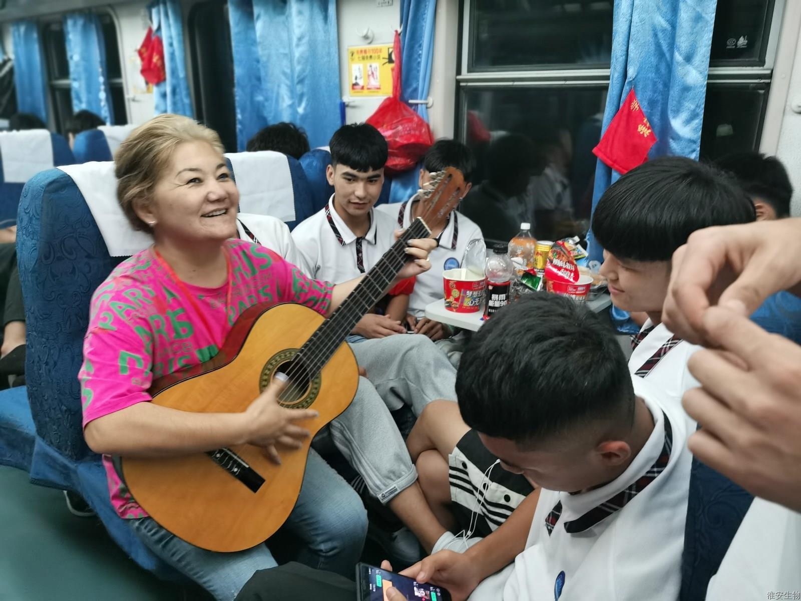 每逢佳节倍思亲。因返校当天正逢传统节日中秋节,工作小组成员组织新生和老生在车厢内进行联谊活动,学生们吃着月饼,弹着吉他,忘情歌唱,车厢内气氛热烈而祥和。