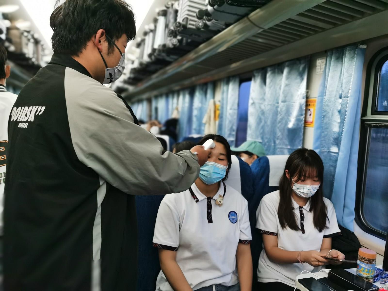 在“回家”的旅途中,全体师生严格按照省、自治区教育部门和学校的管理规定,积极配合,共同做好常规化疫情防抗工作。每天严格执行早、中、晚三次全员体温检测,对于身体不适等情况做到早发现、早治疗。随行的工作小组成员推行24小时轮班制度,对学生实现零距离守候。工作小组的成员们时不时与学生亲切交谈,及时了解老生暑假在家情况和新生们的思想动态。