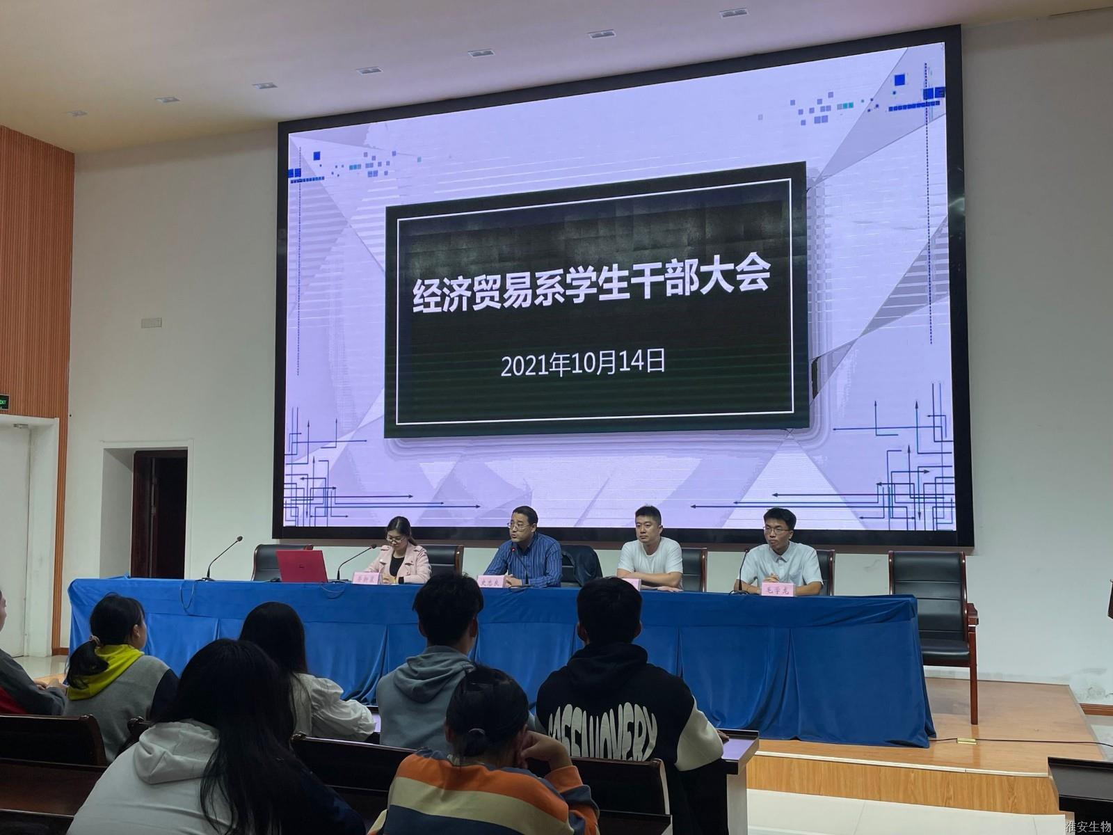 为了明确学生干部的工作职责,提高他们的思想素质,树立良好的服务意识,以便更好地做好新学期学生管理工作,10月14日晚,我校经济贸易系于新农业实训楼124会议室召开新学期学生干部大会。经济贸易系主任史忠良、副主任荣新星、学生管理干事陈云昌、团学会及各班班长、团支书等参加本次会议。