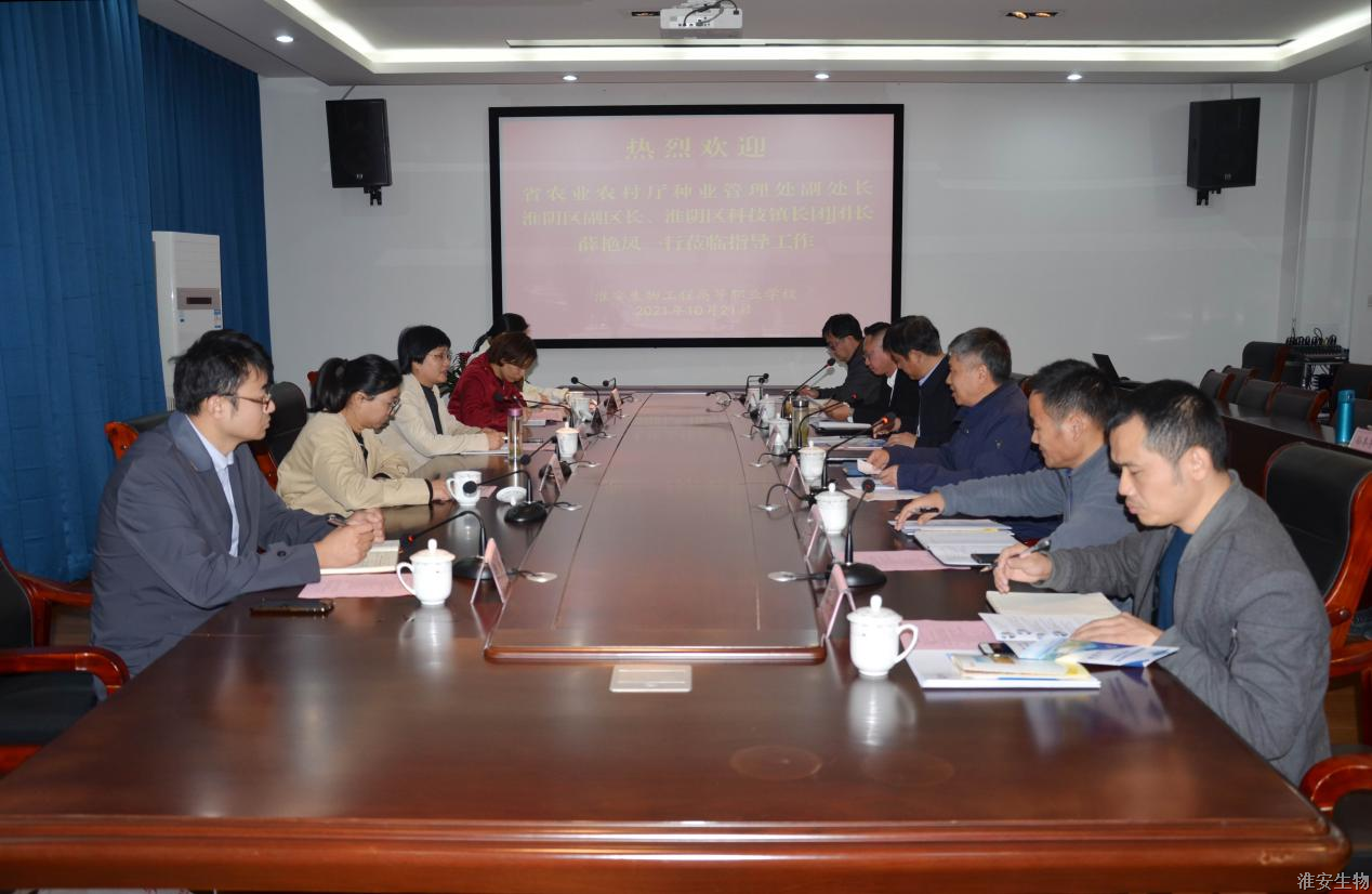 10月21日下午,省农业厅种业管理处副处长、淮阴区副区长、淮阴区科技镇长团团长薛艳凤一行莅临淮安生物工程学校指导工作。