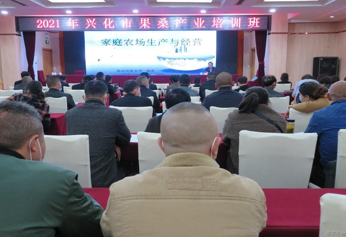 10月28日至30日,由江苏省农广校兴化市分校牵头,淮安生物工程学校组织承办的为期3天“2021年兴华市果桑产业培训班”在淮安圆满结束!来自兴化市84名果桑种植大户、产业带头人参与了本次培训。淮安生物工程学校副校长禹立馨在开班仪式上致欢迎辞,希望广大学员强化思想、提升认识、抓住机会、学以致用。兴化市农广校校长王志新参加了开班仪式并讲话,明确本次培训班的目的和意义,并对本次培训提出了严格要求和希望。