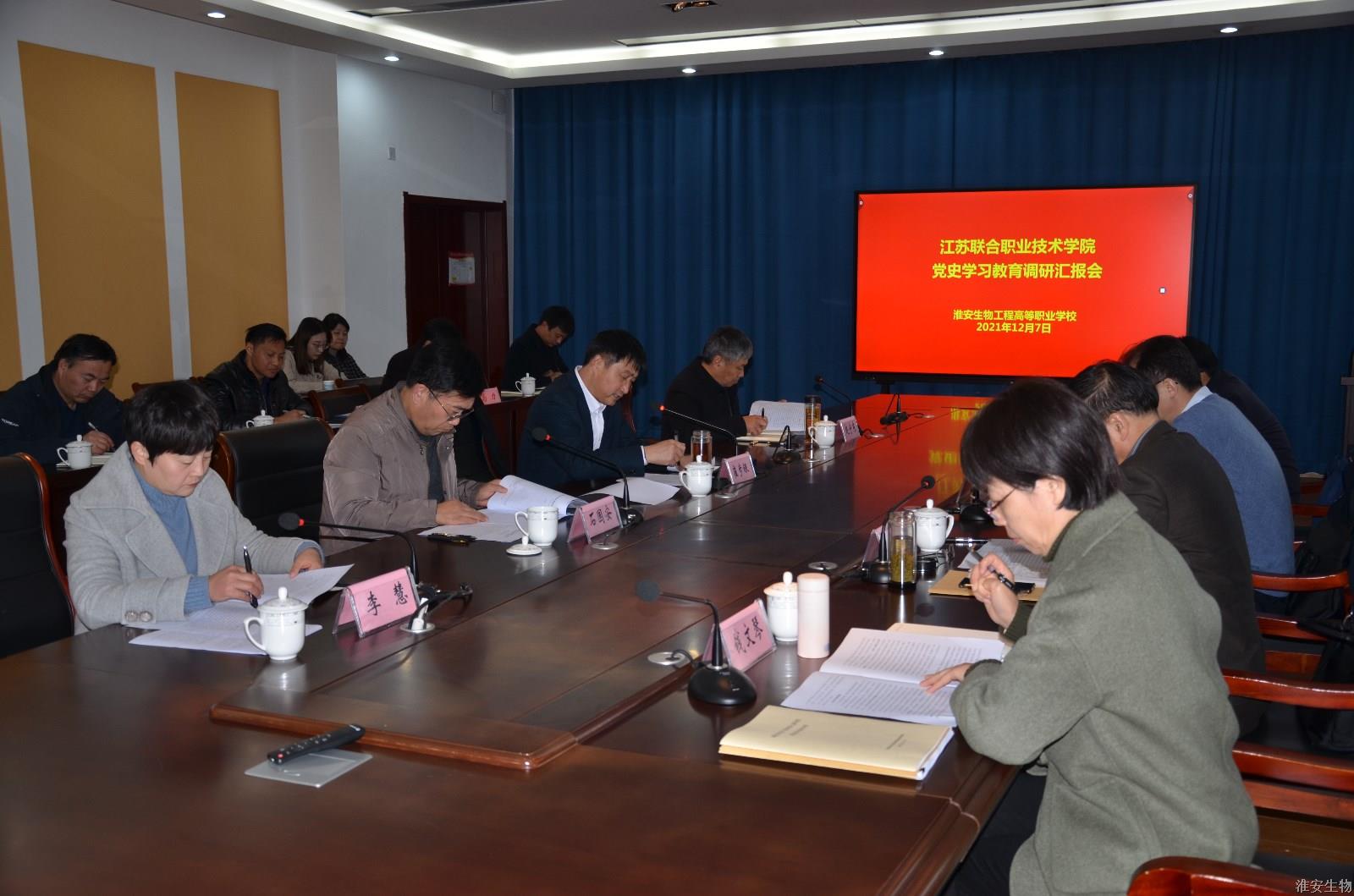 为了督促学习贯彻落实《关于开展党史学习教育的实施方案》、《关于开展庆祝中国共产党成立一百周年系列活动实施方案》《关于大力推进新时代学院五年制高职思想政治理论课建设的意见》,调研指导学校的意识形态、安全和学生心理健康教育、教学管理和师资队伍建设工作,12月7日上午,江苏联合职业技术学院副院长马万全、苏州工业园区分院原校长王乃国、江宁分院原校长王小林、联合学院教学管理处副处长钱文琴一行到淮安生物工程学校进行调研指导。