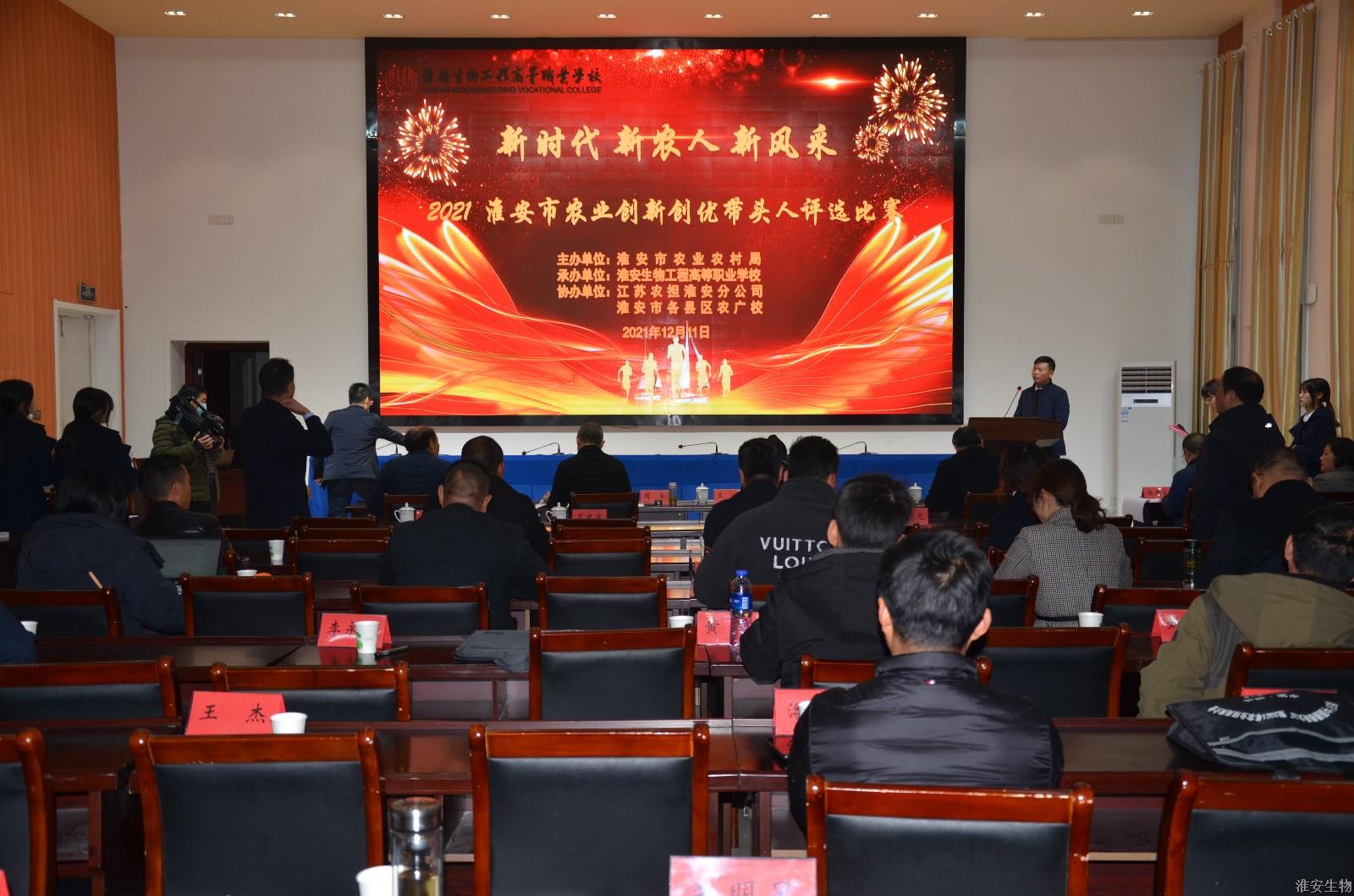 12月11日,淮安市农业农村局主办的“2021淮安市农业创新创优带头人评选比赛活动”在淮安生物工程学校农业实训楼124多功能室举行。江苏省职业农民培育指导站站长、农广校常务副校长周军,淮安市农业农村局副局长王兴龙,淮安市农产品品牌协会会长王欣,淮安市农广校校长邢国文,淮安市财政局农业农村处处长张海东,淮安市农科院研究员袁彩勇,淮安柴米河农业科技有限公司总经理王其传,淮安市教育局职社处处长夏建军,淮安市总工会技能办主任卜广杰,淮安生物工程学校副校长禹立馨以及各县区农广校校长参加活动。
