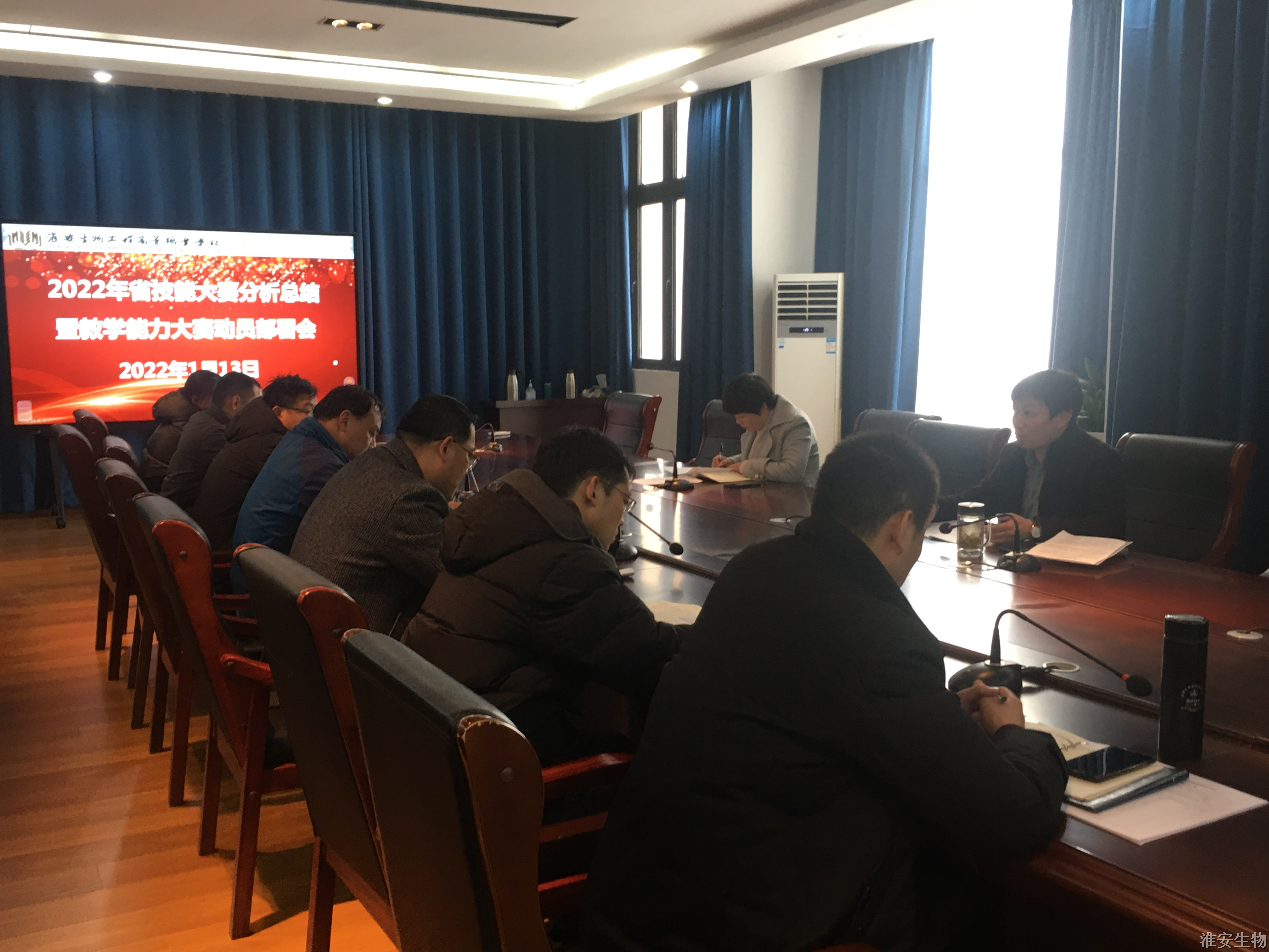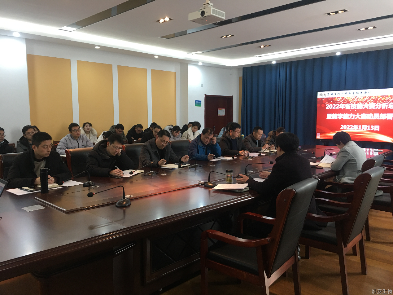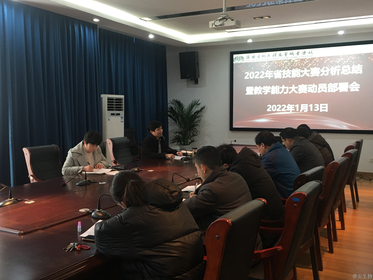 2022年1月13日下午3点,淮安生物工程学校在农业实训楼119会议室举行2022年省技能大赛分析总结暨教学能力大赛动员部署会,副校长李慧、教务处处长马力、副处长刘艳鲜、柏雪飞,各系部负责人、教学副主任、技能大赛项目负责人和指导教师参加会议。会议由马力主持。