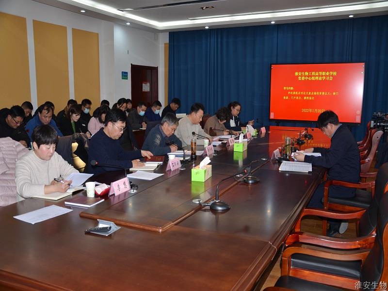 2022年1月20日下午,淮安生物工程高等职业学校在农业实训楼119会议室召开党委中心组(扩大)会议。党委书记、校长崔步银主持会议并讲话。