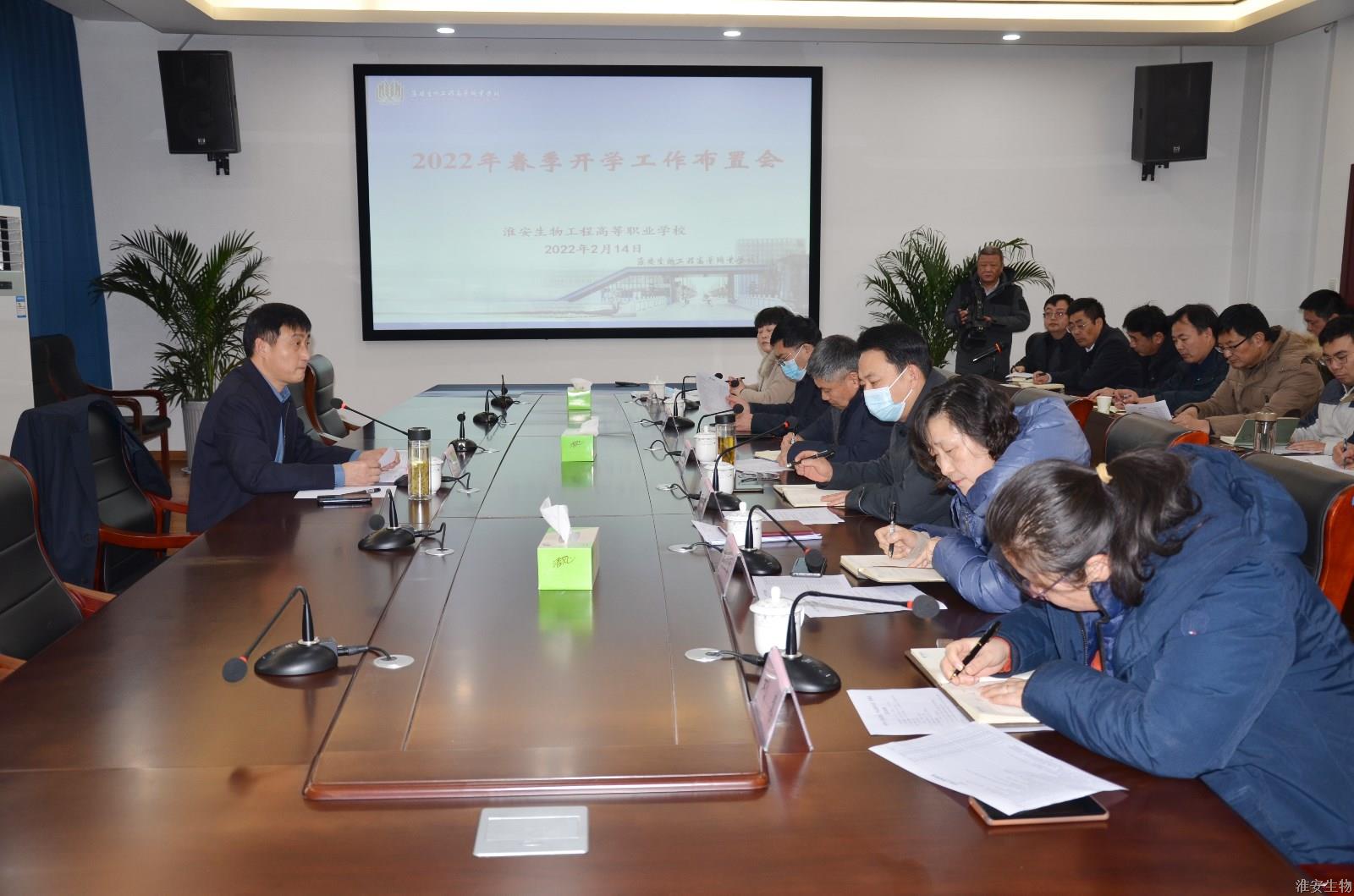 为做好新学期开学准备工作,顺利迎接学生开学,2月14日下午,淮安生物工程学校在新农业实训楼119会议室召开2022年春季开学工作布置会,开启新学期奋斗新篇章。校领导班子成员,各部门负责人参加会议。