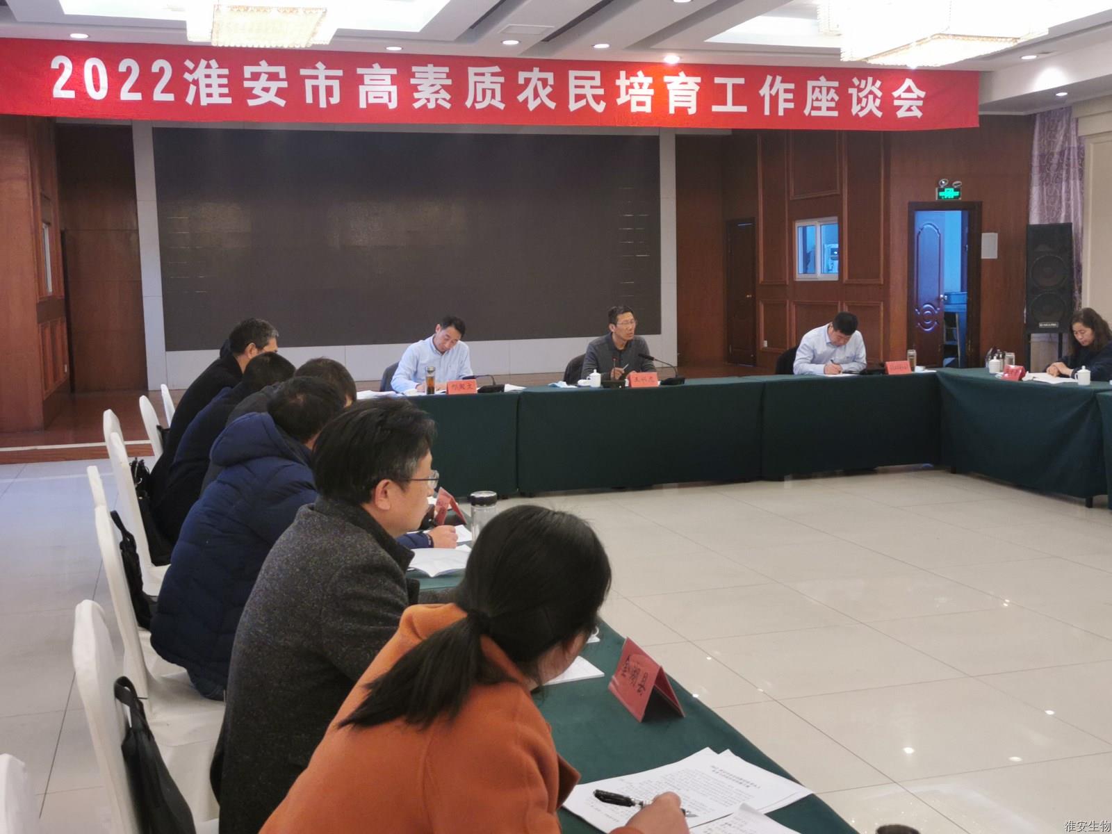 为全面启动2022年淮安市高素质农民培育工作,明确目标任务,落实路径措施,为高质量完成全年工作打好基础。2月28日下午,由淮安生物工程学校承办的淮安市高素质农民培育工作座谈会在淮安区淮安宾馆召开,淮安市农业农村局副局长王兴龙、淮安市农广校校长邢国文、江苏农担淮安分公司负责人葛富、各县区农广校校长、淮安生物工程学校成教处负责人等参加会议。