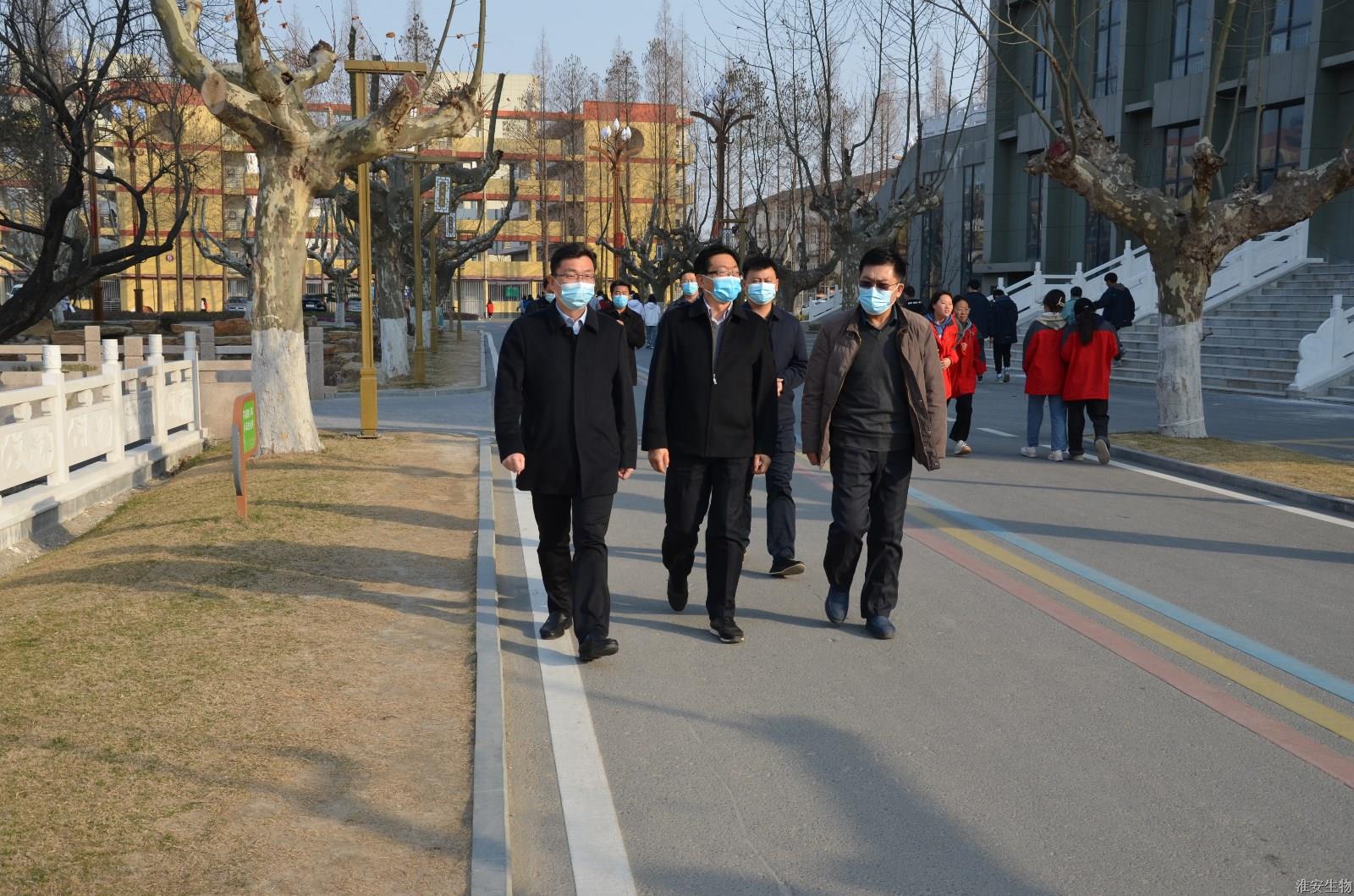 3月7日下午,市教育局副局长薛祝其带队来校检查指导疫情防控工作。淮安生物工程学校党委书记、校长韩永胜,党委副书记石国安陪同检查。