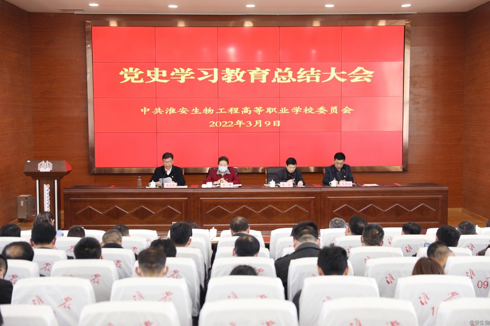 3月9日下午,淮安生物工程学校在行政楼报告厅召开党史学习教育总结大会。市党史学习教育第六巡回指导组组长朱锦、副组长陈波出席会议,校领导班子成员、全体党员参加会议。淮安生物工程学校党委书记、校长韩永胜对学校党史学习教育情况做了全面总结,朱锦组长做了指导讲话。会议由校党委副书记石国安主持。