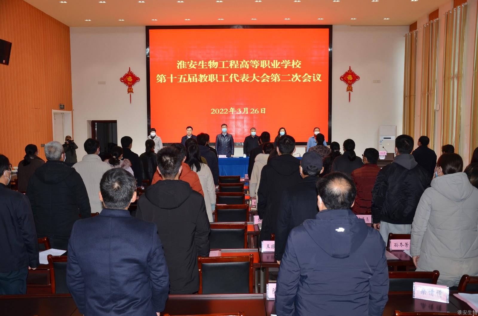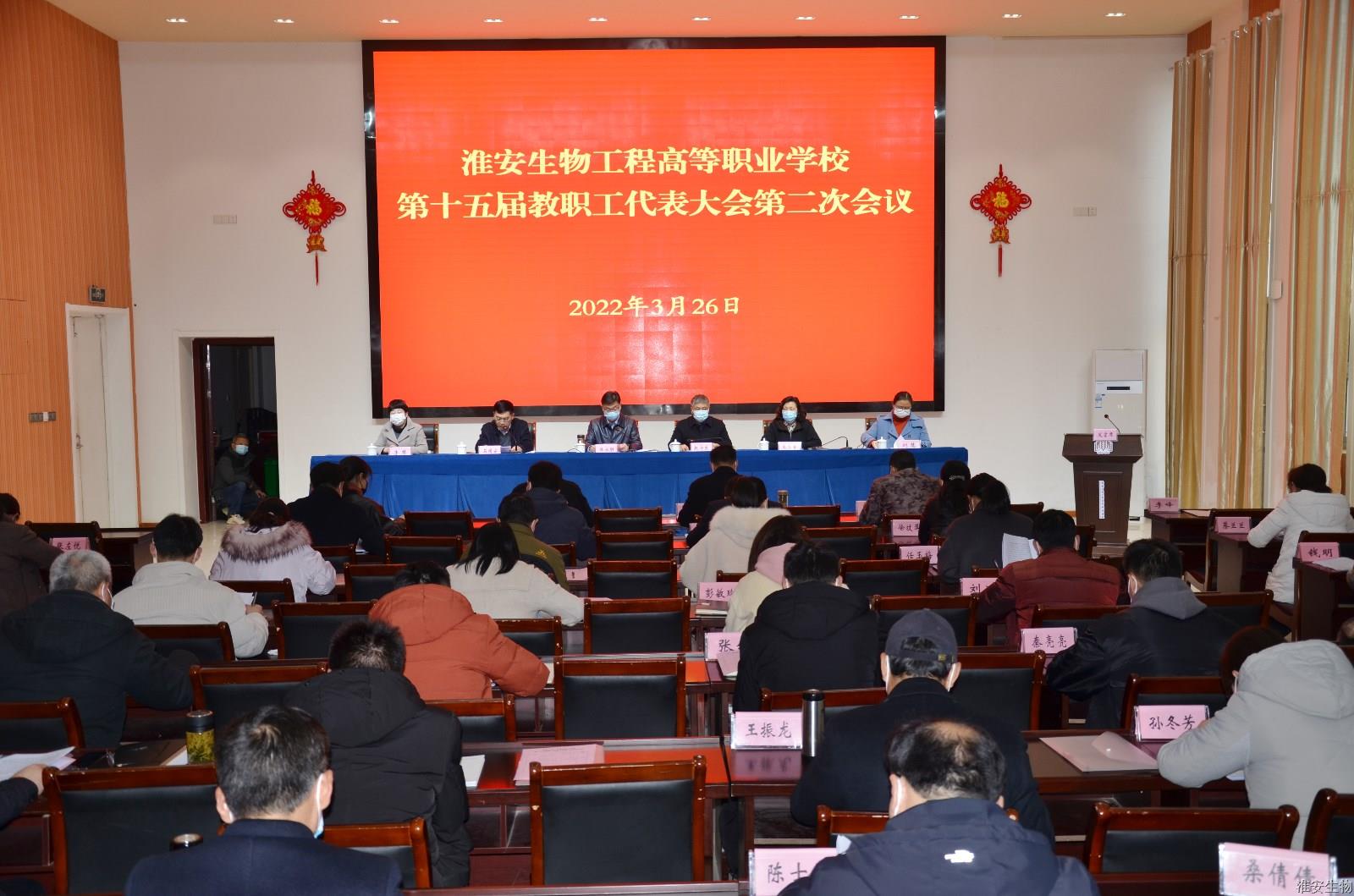 2022年3月26日下午,淮安生物工程学校第十五届教职工代表大会第二次会议在新农业实训楼124举行。校党委书记、校长韩永胜等校领导出席会议。48位教职工代表参加会议。校党委副书记石国安主持会议。