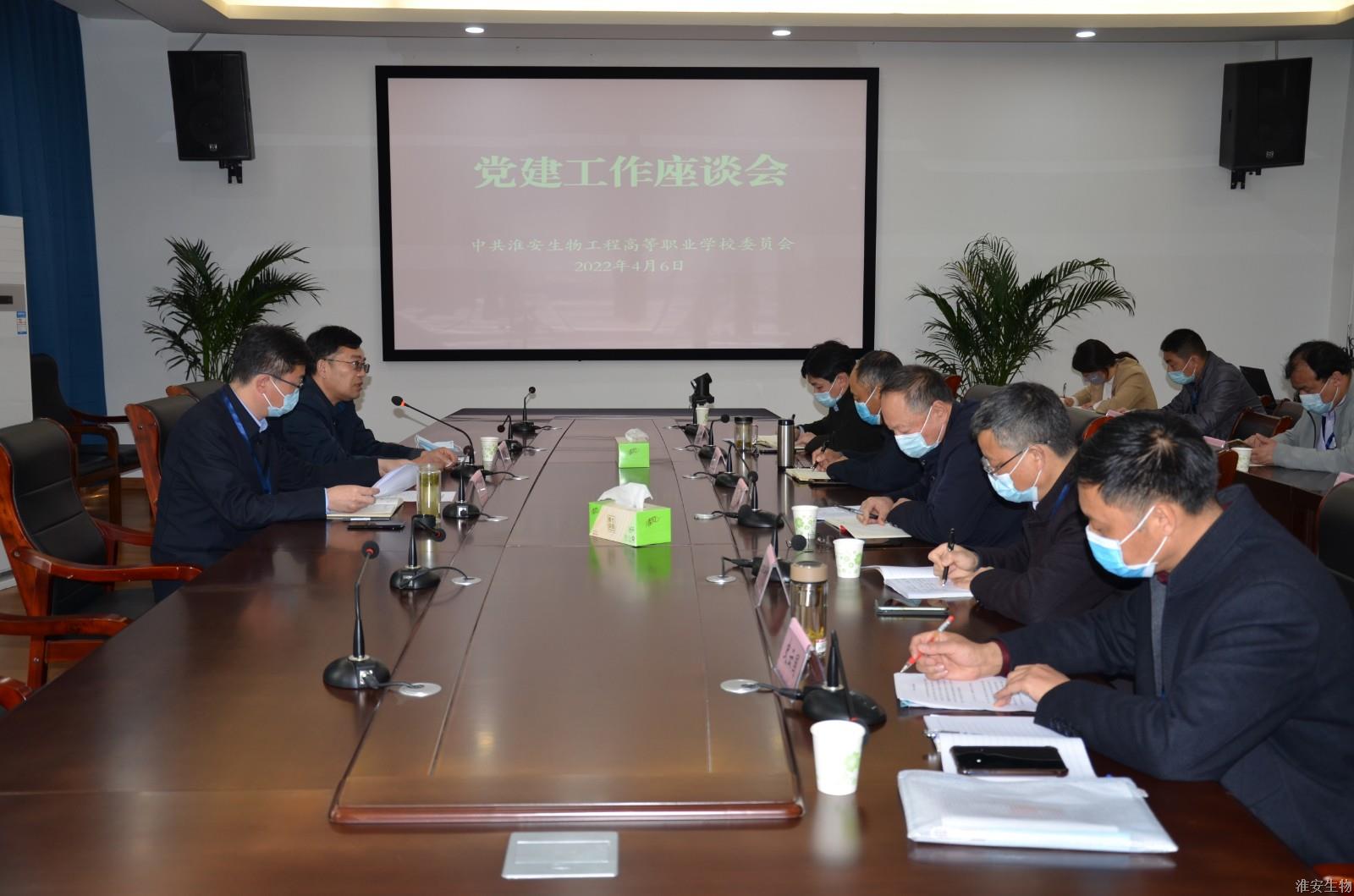 4月6日下午,淮安生物工程学校在新农业实训楼119会议室召开了党建工作座谈会,校党委书记、校长韩永胜,党委副书记石国安,各党支部书记出席会议,信息宣传处负责人姚君、工会副主席任玉梅、团委书记陈逸林列席会议。
