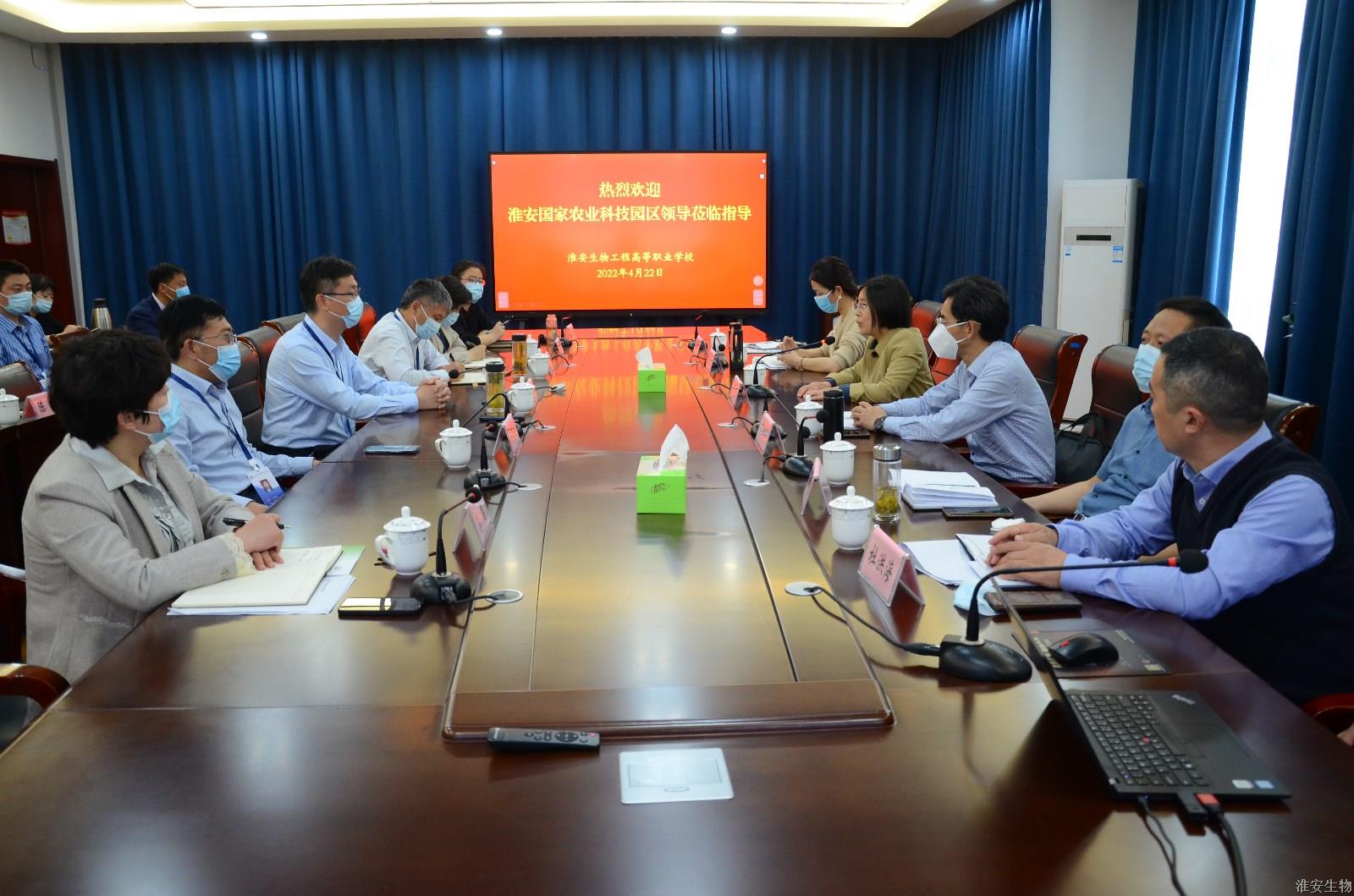 4月22日,淮阴区委常委、淮安国家农业科技园区党工委书记丁凤珍一行来淮安生物工程学校洽谈合作事宜。校党委书记、校长韩永胜出席洽谈会,相关校领导和处室、系部负责人参加会议。