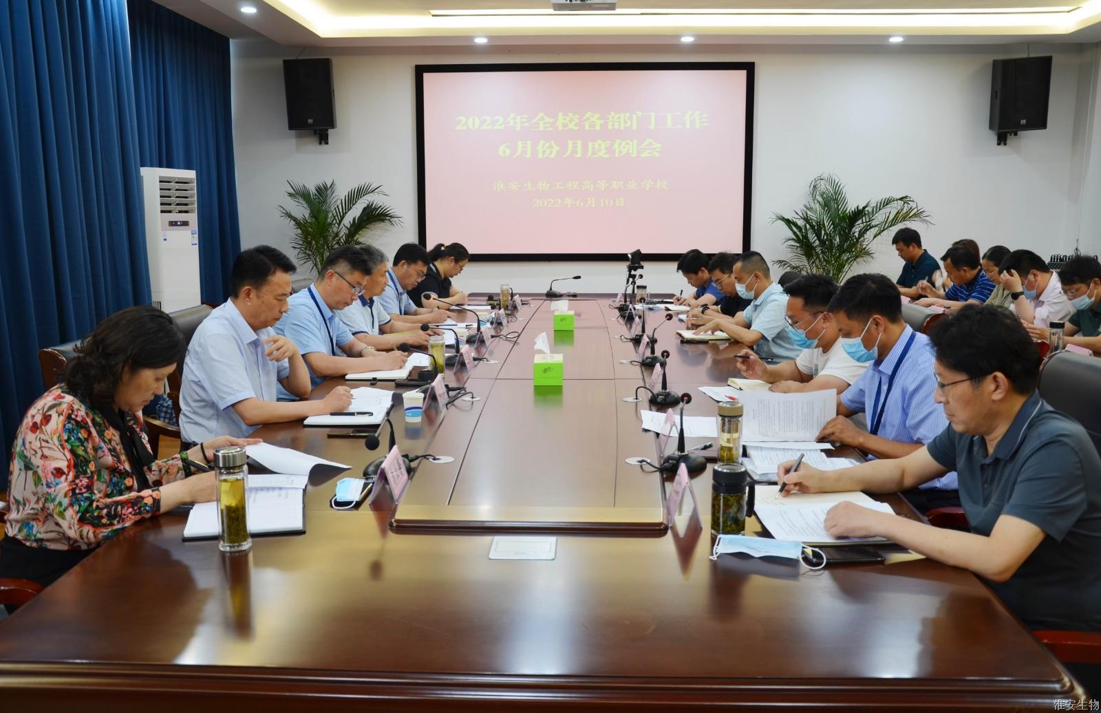 6月10日下午,淮安生物工程学校在农业实训楼119会议室召开2022年全校各部门工作6月份月度例会。校领导班子,各处室、系部负责人参加会议。副校长赵守东主持会议。