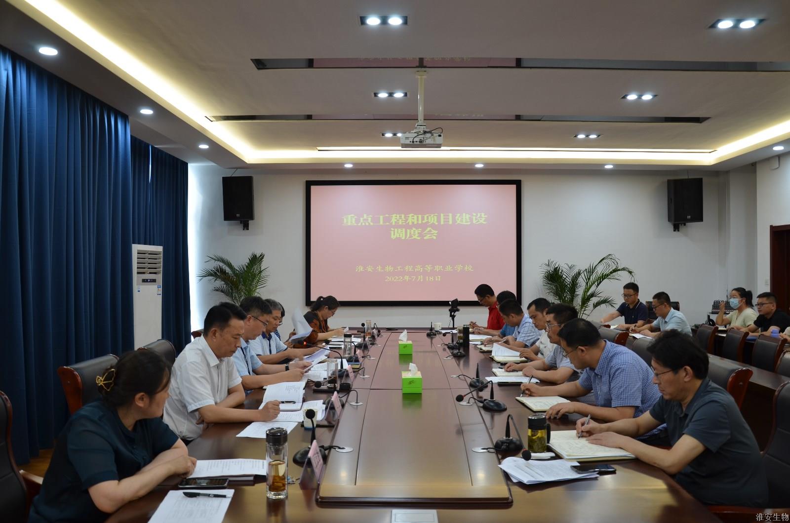 2022年7月18日下午,淮安生物工程学校在农业实训楼119会议室召开重点工程和项目建设调度会。校党委书记、校长韩永胜,副校长赵守东、纪委书记王坚、党委副书记石国安、副校长禹立馨、副校长刘慧及各相关处室负责人参会。