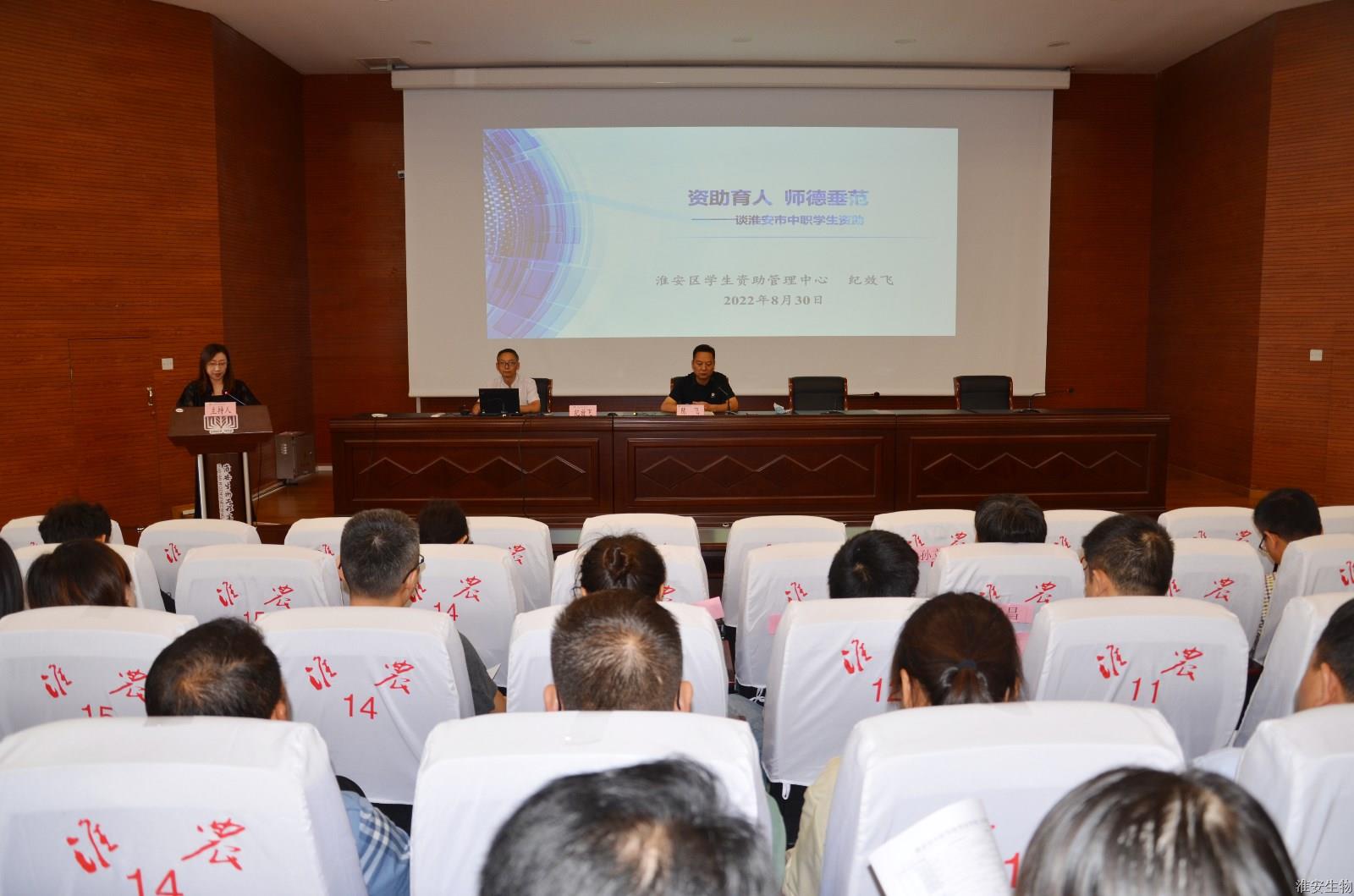 8月30日下午,淮安市学生资助服务中心陈飞主任首先向大家解读了国家有关资助政策和文件,随后邀请淮安区学生资助服务中心具体负责中职、学前教育和生源地助学贷款工作的纪效飞老师为我们带来题为《资助育人 师德垂范——谈淮安市中职学生资助》讲座,纪老师带领大家学习了国家资助政策、中职资助工作的具体内容、资助工作中的典型案例等方面的内容。自开展学生资助工作以来,学校严格执行省市资助工作的文件,高度重视困难家庭学生的资助工作,本着公开、公平、公正的原则,把专项资金用在贫困学生和优秀学生身上,让受助学生既感受到党和政府的关怀与温暖,又激励自己努力学习,以优异的成绩回报社会。