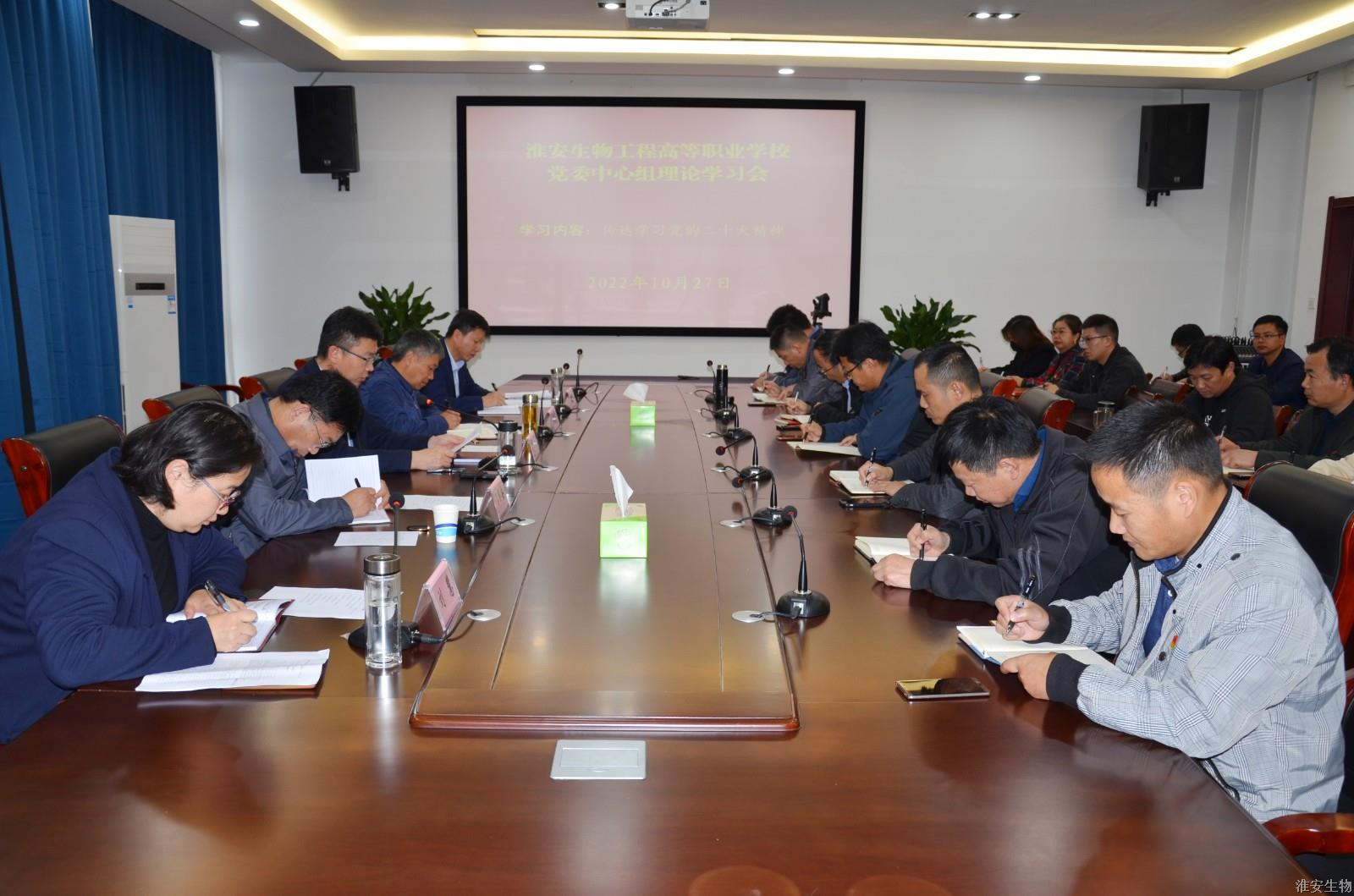 10月27日下午,淮安生物工程学校在农业实训楼119会议室召开党委中心组扩大学习会,学习传达党的二十大报告精神。校党委领导班子成员和各处室、系部主要负责人参加会议,校党委书记、校长韩永胜主持会议。