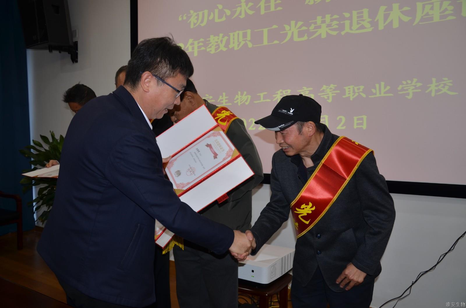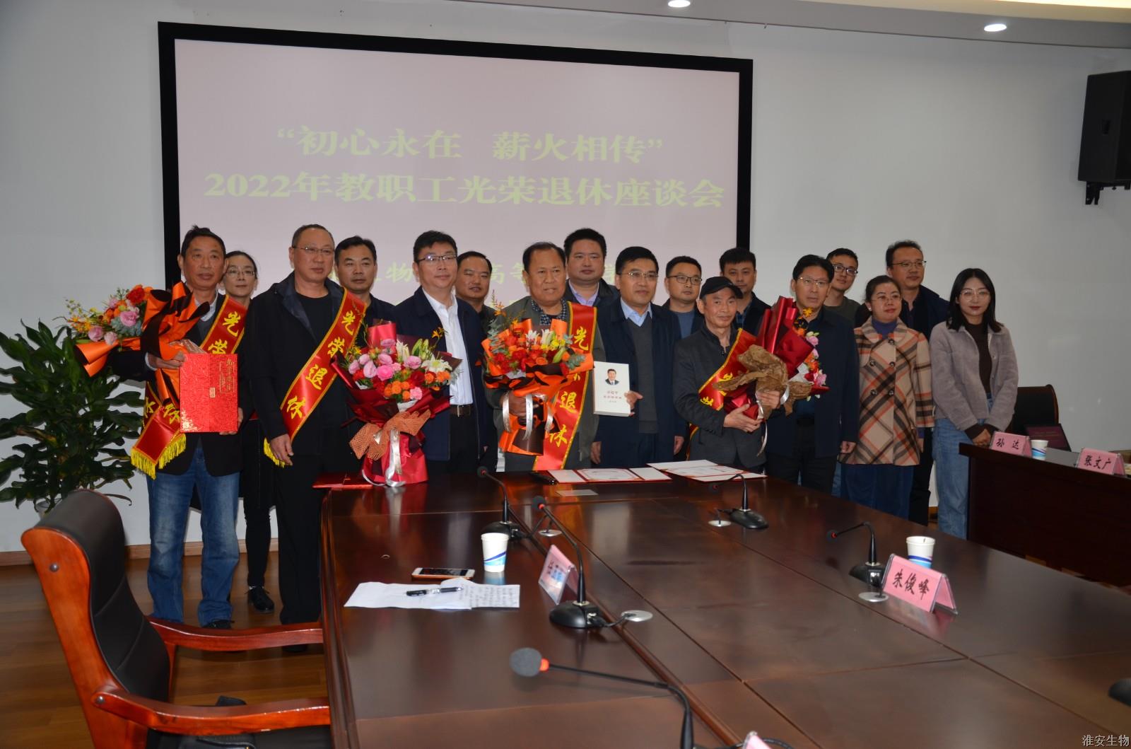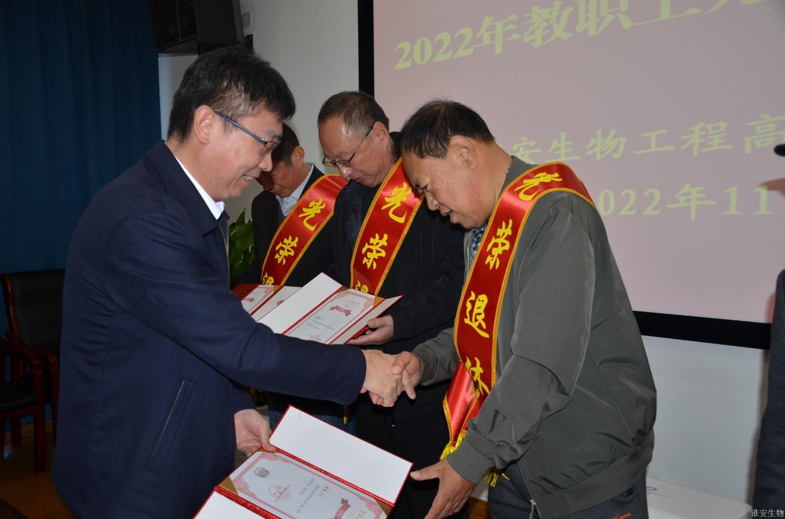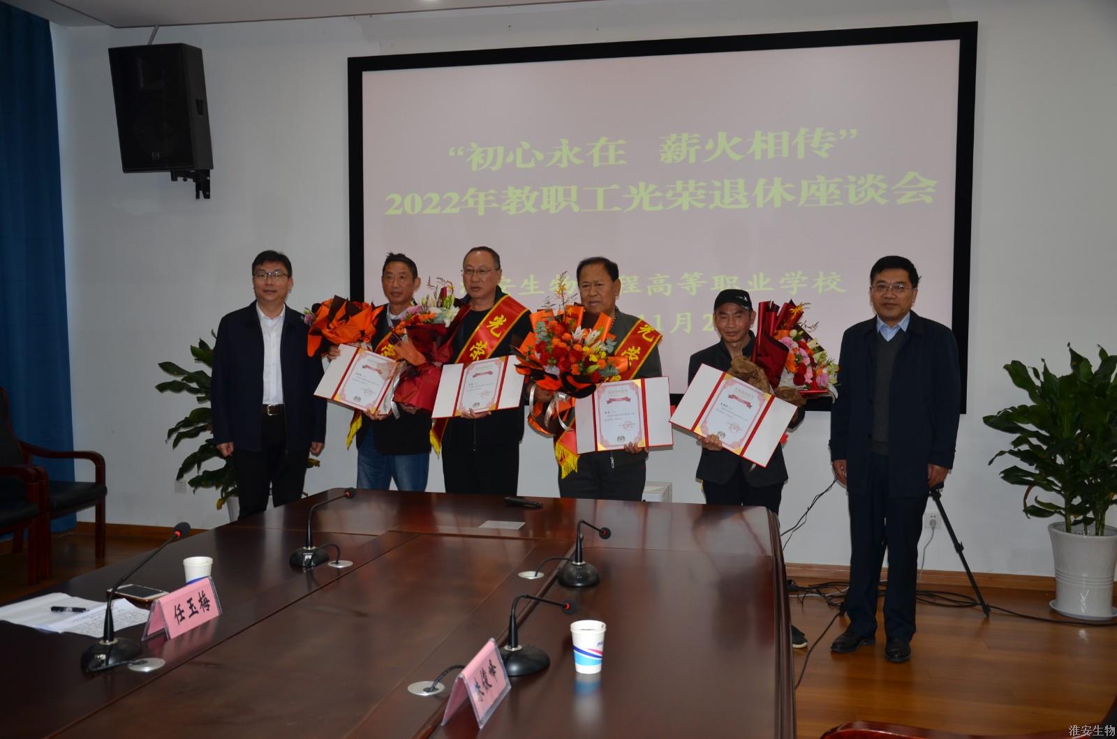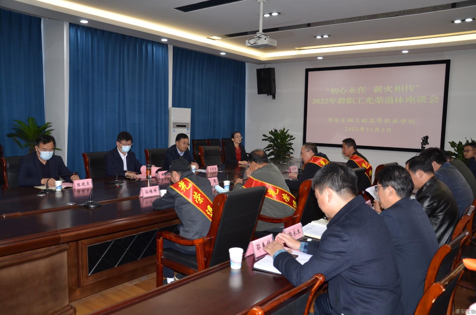 11月2日上午,室外阳光明媚、丹桂飘香,室内温暖如春。淮安生物工程学校2022年度退休教职工座谈会在农业实训楼119会议室召开。党委书记、校长韩永胜带领部分领导班子成员、办公室、人事处、工会、财务处、总务处、图文信息中心等部门负责人及其他同志,前来欢送退休教职工。大家欢聚一堂,共话学校百年伟业,一起回忆共同奋斗的幸福时光,感受温馨和谐、积极向上的校园氛围。党委副书记石国安主持座谈会。