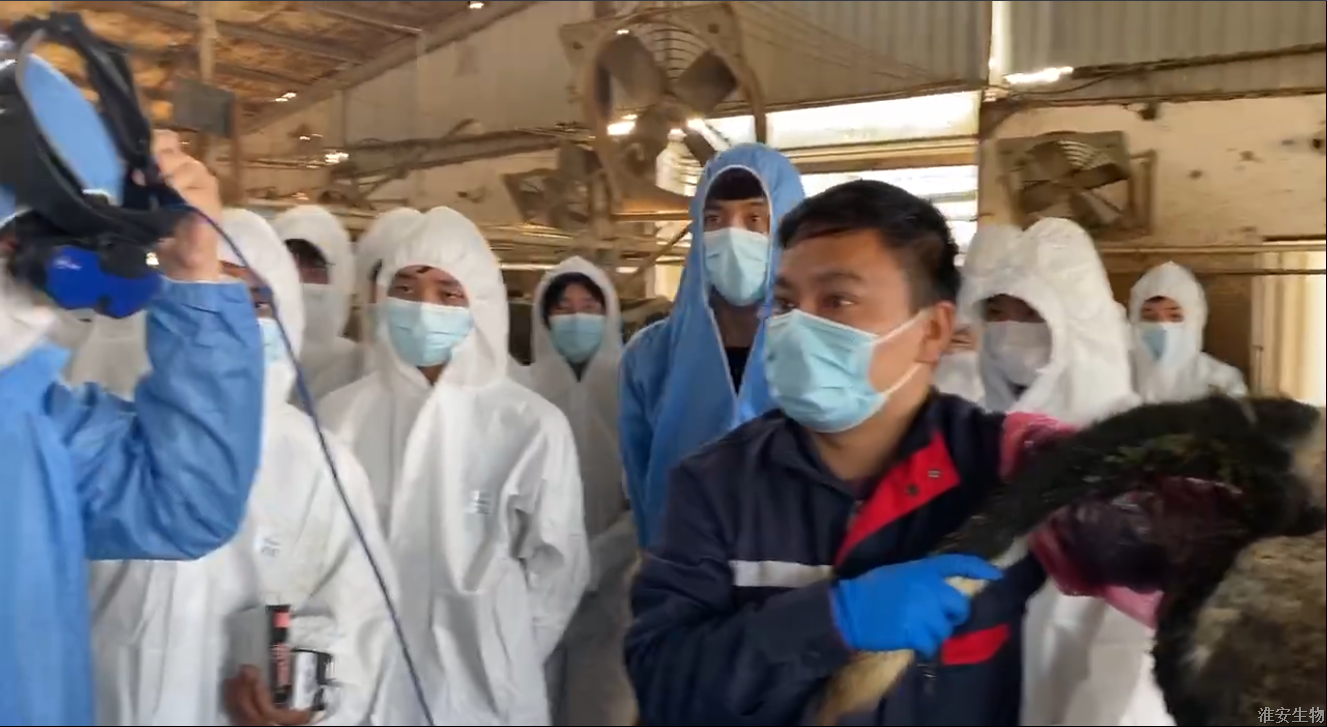 牧业生产副场长曹小雷组织所有师生换上防护服、进行全身消毒后,进入场区参观学习。曹场长首先带领大家参观了牧场,了解了牧场基本情况,然后开始现场教学。