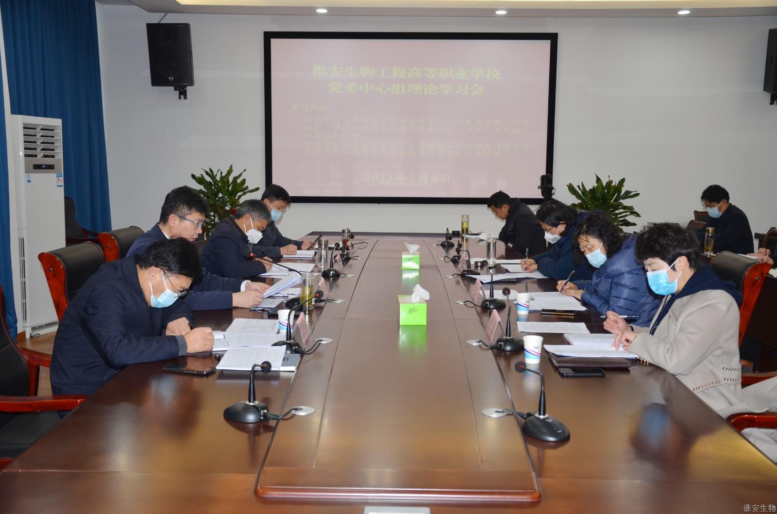 1月9日上午,淮安生物工程高等职业学校在农业实训楼119会议室召开党委中心组学习扩大会,校党委领导班子成员,办公室、人事处、财务处、教务处、学生处、科研处、招就处、成教处、合作交流处、民族教育处、六系一部主要负责人参加会议,党委书记、校长韩永胜主持会议。