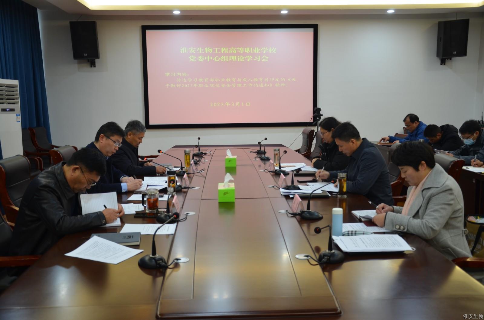 3月1日上午,淮安生物工程学校在农业实训楼119会议室召开党委中心组学习扩大会,校党委领导班子成员,总务处、教务处、学生处、保卫处、民族教育处及六系一部主要负责人参加会议,党委书记、校长韩永胜主持会议。