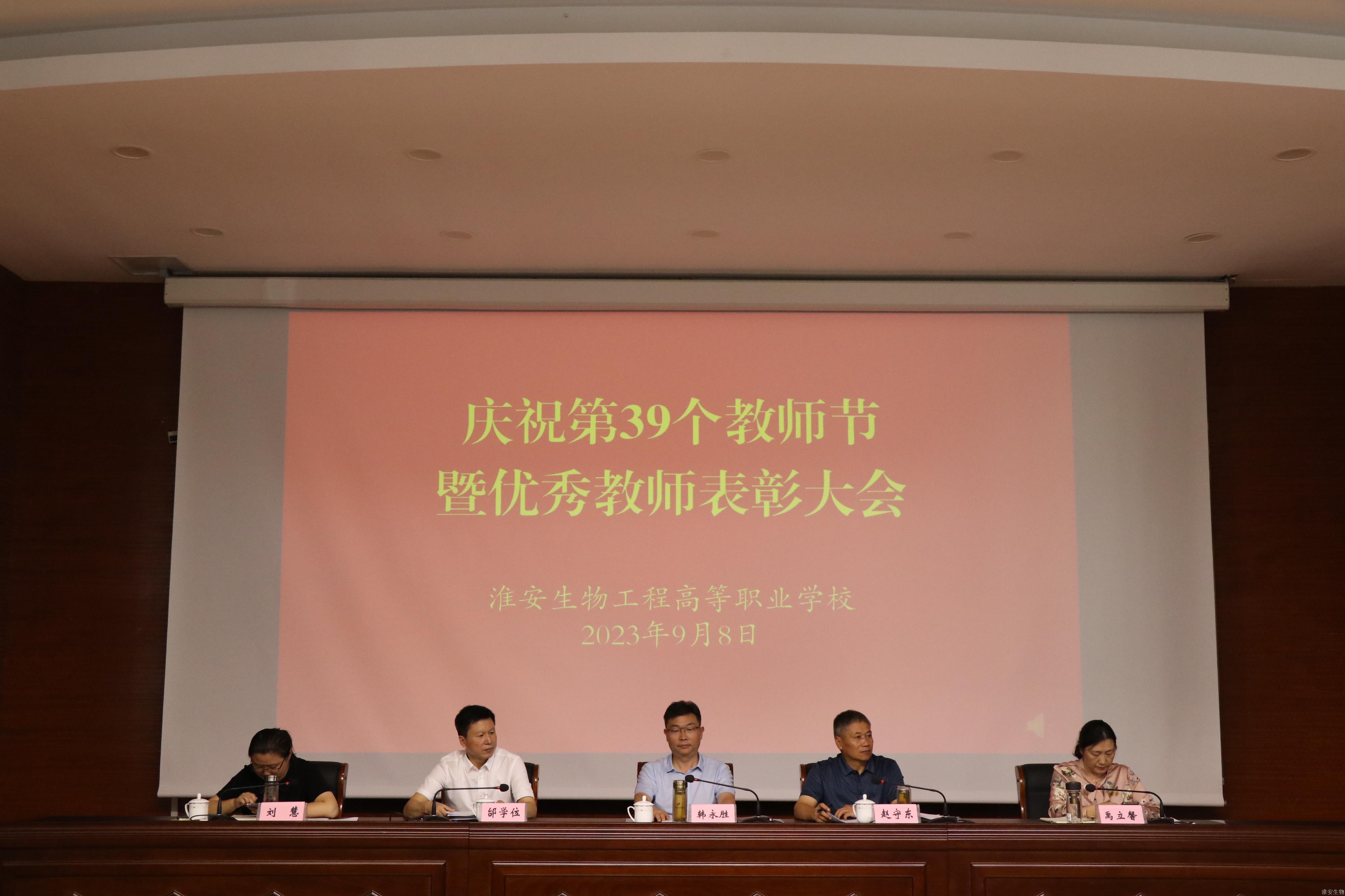 暑退九霄净,奋进正当时。2023年9月8日下午,在第39个教师节即将来临之际,淮安生物工程学校召开全校教职工大会。校领导班子全体成员、全体教职工参加会议,会议由副校长赵守东主持。