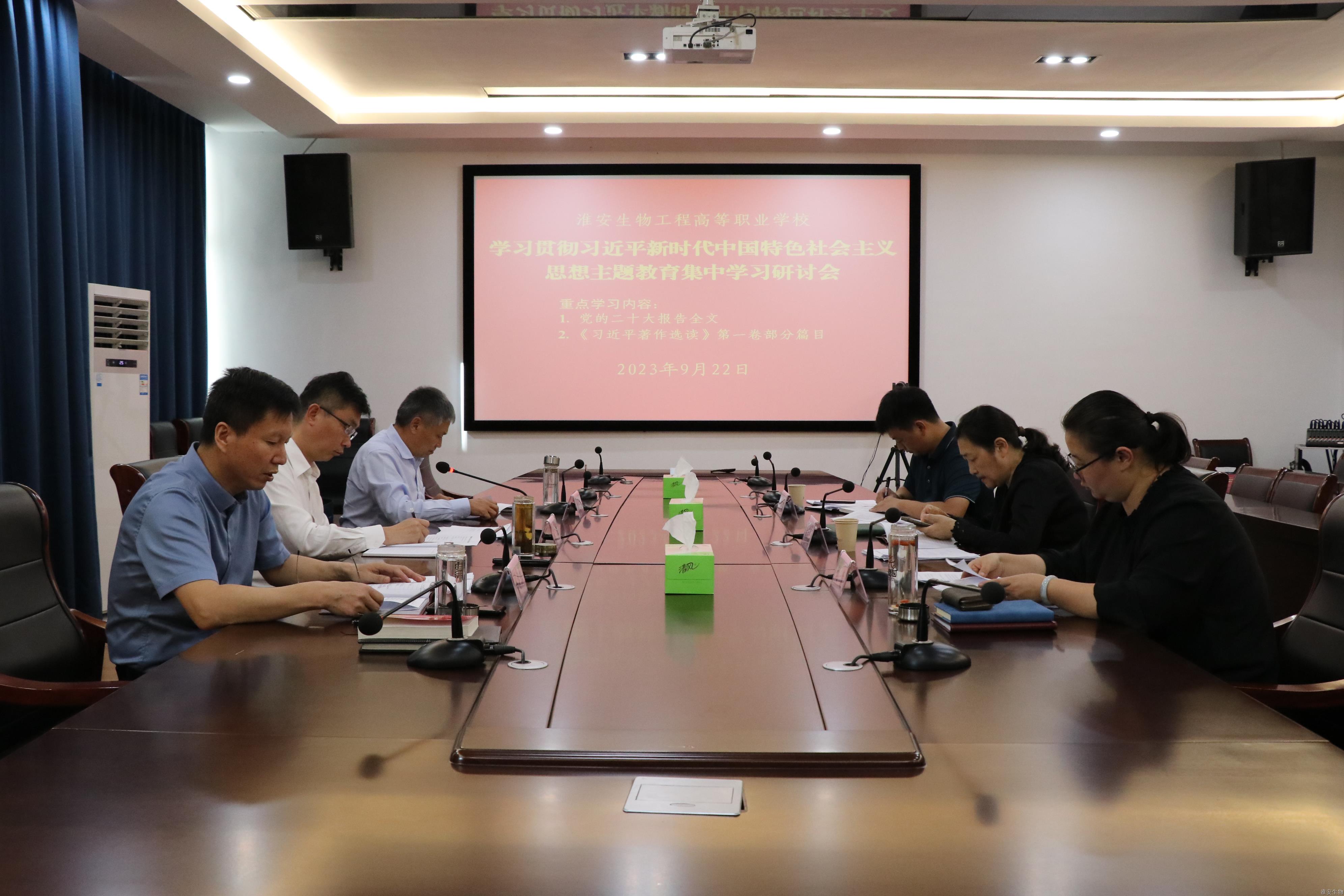 根据学习贯彻习近平新时代中国特色社会主义思想主题教育安排,9月22日下午,淮安生物工程学校党委领导班子举行主题教育第一次集中学习研讨会,深入学习领会习近平新时代中国特色社会主义思想,深刻领悟“两个确立”的决定性意义,增强“四个意识”、坚定“四个自信”、做到“两个维护”。校党委书记、校长韩永胜主持并讲话。校党委领导班子成员参加会议。