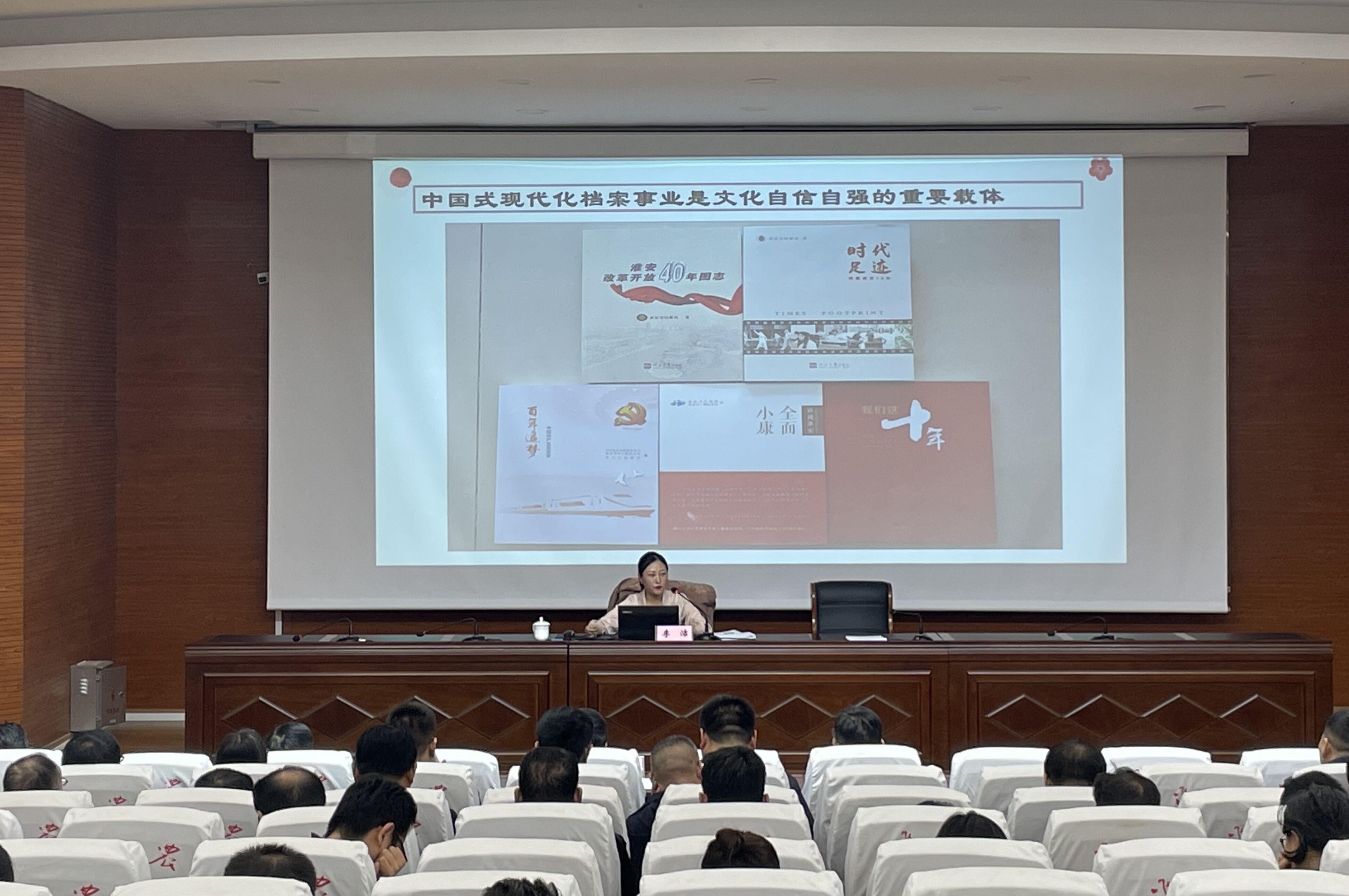李洁处长分别从“中国式现代化档案事业发展的重大意义、中国式现代化档案事业发展面临的挑战、扛起发展中国式现代化档案事业的使命担当”三个方面为我们作了深入浅出的解读。她的授课内容丰富、务实高效、逻辑严谨,既有理论高度,又紧密结合实际,兼具针对性、指导性和实效性,大家听后深受启发、受益匪浅。