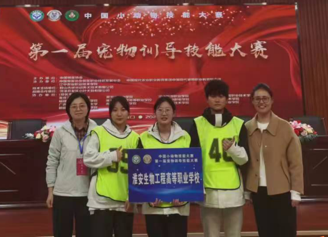 中国小动物技能大赛第一届宠物训导技能大赛由中国兽医协会主办,中国兽医协会兽医职业技能发展分会、中国现代宠物职业教育联合体共同承办,宠物训导技能大赛设置了障碍比赛、亲和比赛和综合随行比赛三个分项,来自全国14所高校的48位选手参加了大赛角逐。我校师生团队凭借精心设计、刻苦训练和良好发挥取得了优异的成绩,蒋蓓蕾、仲华玲老师获得优秀指导老师奖。