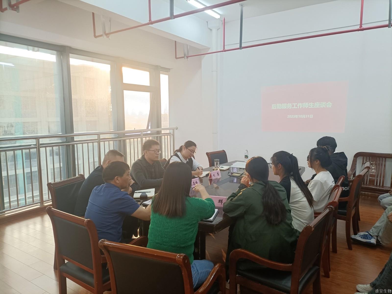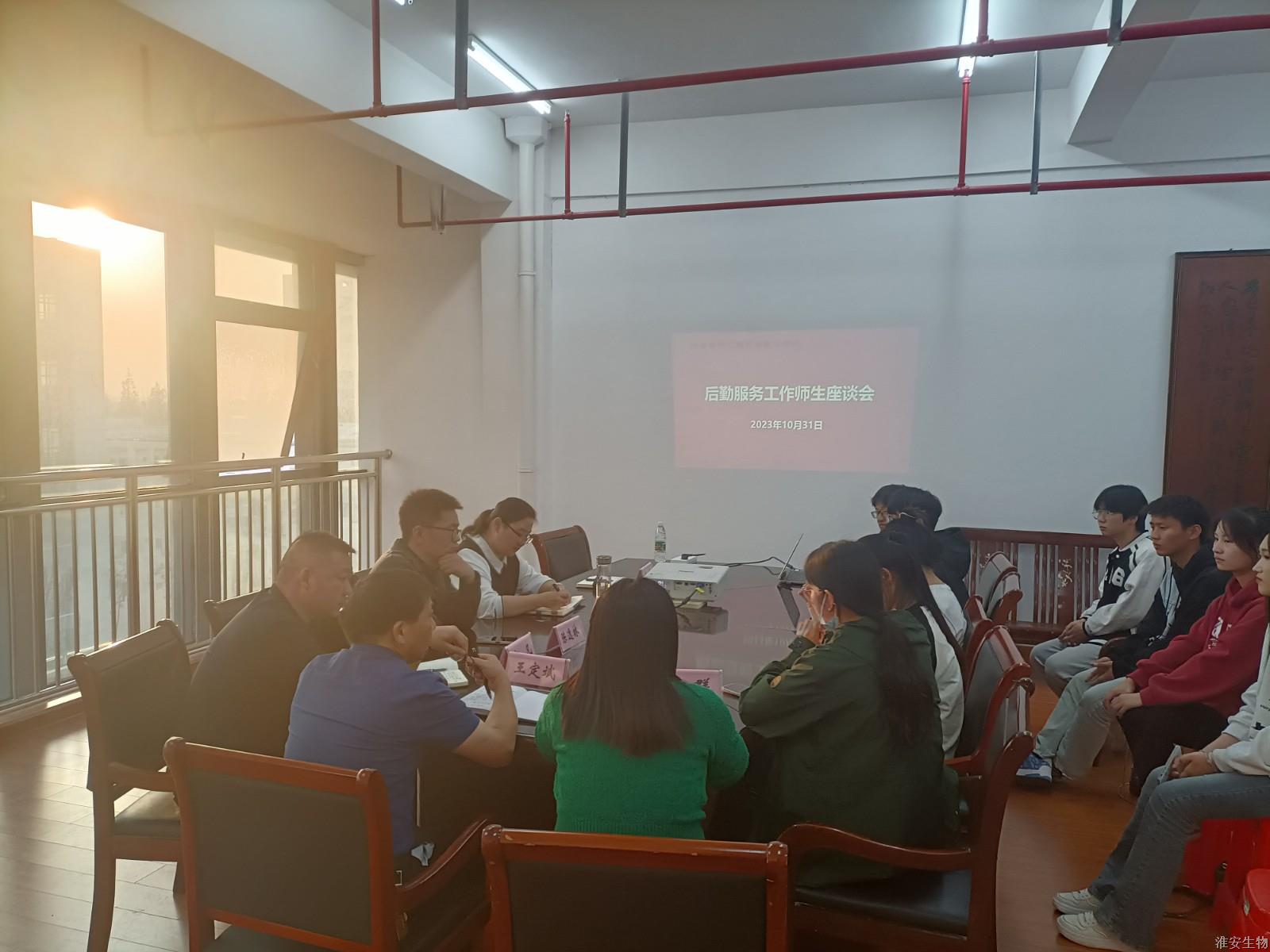 为推动主题教育走深走实,全面落实校党委爱心红网系列活动扎实有效开展,10月31日下午,我校组织召开了后勤服务工作师生座谈会,旨在充分了解学生对学校后勤服务的诉求和当前服务中存在的问题,梳理学生急难愁盼的项目内容,进而为下一步制定全面提升后勤服务精细化水平方案掌握真实情况。副校长刘慧出席座谈会,校团委书记陈逸林、总务处事务科全体成员、12名学生代表参加了会议,会议由总务处副处长周全主持。