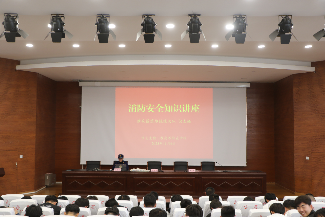 为推进“爱心红网”特色党建项目,深入开展主题教育,加大消防知识普及力度,增强师生的安全意识,提升自救自护能力,建设更高水平的平安校园,11月6日下午,淮安生物工程学校举行消防知识讲座及消防演练,开启消防宣传月活动。淮安区消防救援大队李旭宇参与全程指导,专职宣传员倪支娅为汽车工程系师生代表宣讲了消防知识。保卫处负责人主持活动。