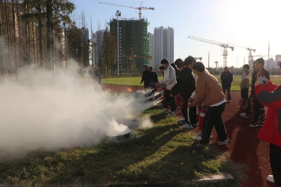 培训结束后,师生代表参加了消防演练活动。倪教官言传身教,为大家演示使用灭火器,激发学生的实践兴趣。大家运用学习到的方法,纷纷动手实践,成功掌握灭火器的使用方法,消防演练活动顺利完成。