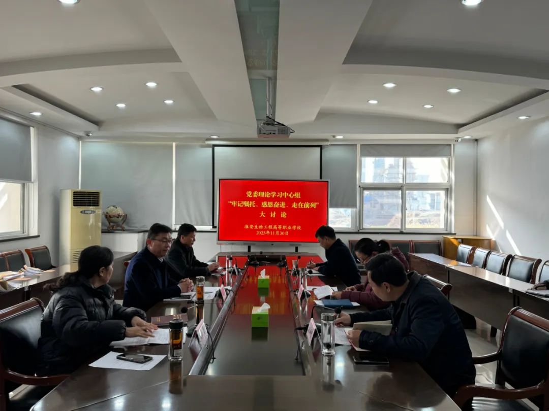 11月30日上午,淮安生物工程学校党委理论学习中心组举行“牢记嘱托、感恩奋进、走在前列”大讨论,深入学习贯彻习近平总书记对江苏工作重要讲话重要指示精神,围绕“走在前列的要求是什么”“我们的差距在哪里”“下一步怎么干”等方面开展交流研讨,深切感悟习近平新时代中国特色社会主义思想的真理力量和实践伟力,持续激发百年淮农高质量发展澎湃动能。校党委书记、校长韩永胜主持并讲话。校党委领导班子成员参加。
