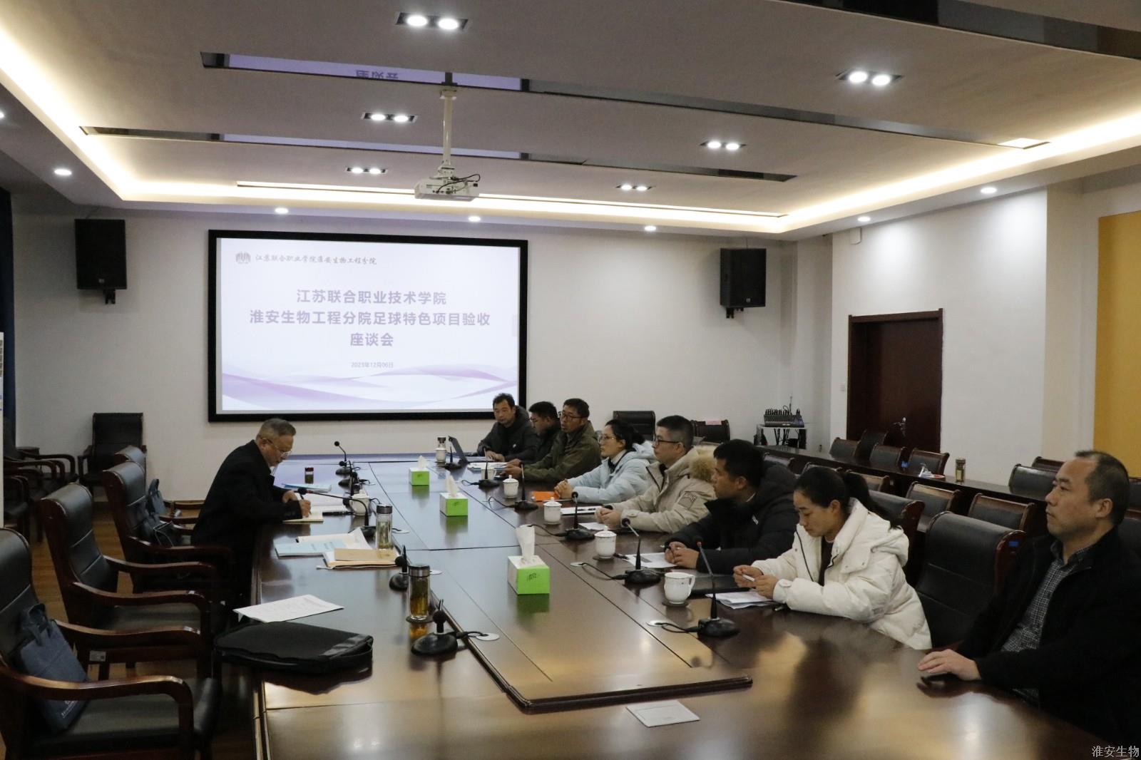 11月6日,由江苏联合职业技术学院江宁分院副校长徐晓明(专家组组长)、江苏省传媒学校副校长龚海伟、江苏联合职业技术学院无锡交通分院杨阳老师、原江苏联合职业技术学院副处级干部季小菁组成的联院专家组,在淮安生物工程分院党委书记、校长韩永胜,副校长邵春祥及相关人员陪同下,对学校体育特色项目(足球)的创建工作进行了现场评审验收。