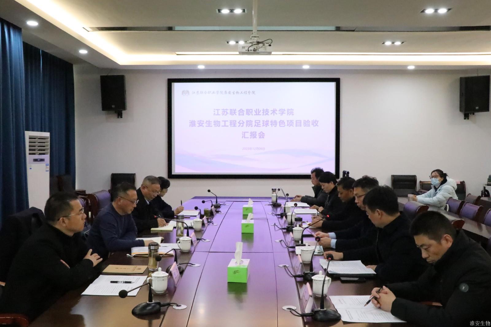 评审汇报会现场,韩永胜首先代表全校师生员工对专家组的到来表示热泪欢迎。他向专家组扼要介绍了学校历史发展沿革、办学条件、办学特色以及在技能大赛、教学大赛、省市各类考核评比中取得的优异成绩。随后,邵春祥从组织领导、建设基础、条件保障、项目实践、示范影响等五个方面重点汇报了淮安生物工程分院“足球体育特色项目”开展实施情况。